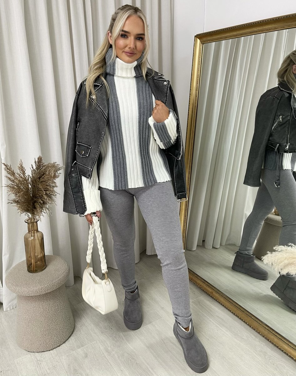 Stay cozy and on-trend with the Shanna Roll Neck Stripe Knitted Jumper. The snug roll neck and soft knitted texture keep you warm, while the classic stripe pattern adds effortless style. Perfect for chilly days, this jumper is comfy, stylish, and so easy to pair with your favorite jeans or leggings.