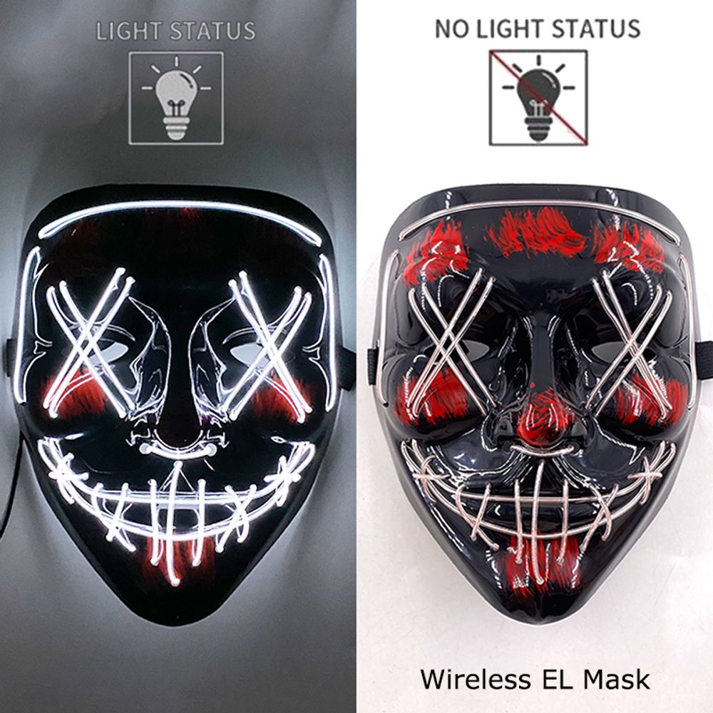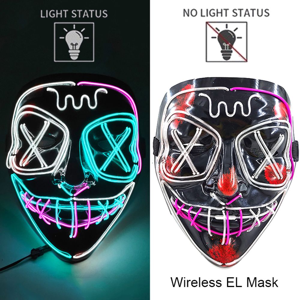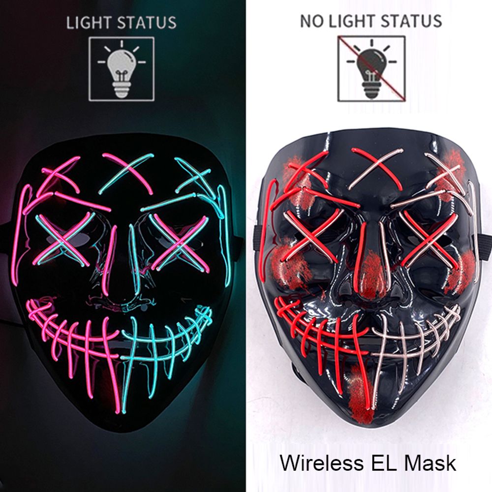 Masque de purge à LED néon sans fil pour Halloween, masques de fête masqués, masque d'horreur lumineux qui pousse dans le noir
