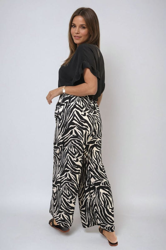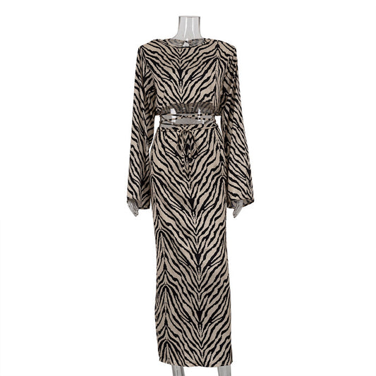Zebra Striped Long Sleeves Cropped Top Suit Skirt Two-piece Set