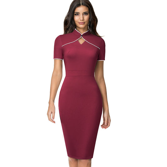 V-neck Slim-fit Slimming Sheath Long Sleeve Dress