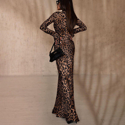 Women's Sexy V-neck Printed Lantern Sleeve Waist-tight Dress