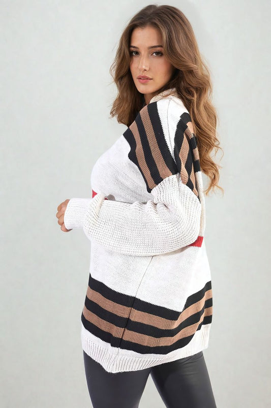 Oversized Striped Long Sleeve Knitted Jumper