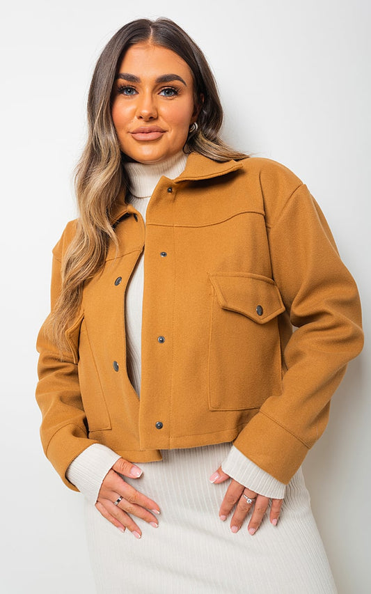 Cropped Long Sleeve Collared Jacket with Pockets