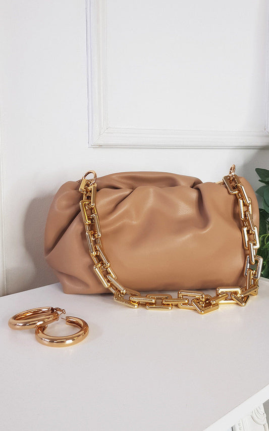 Faux Leather Crossbody Bag with Gold Detail and Adjustable Strap