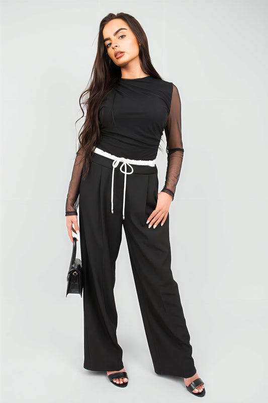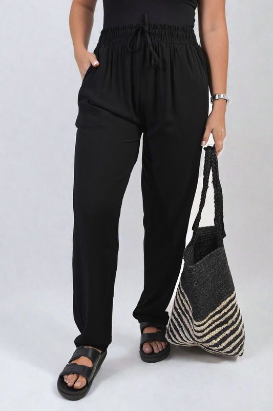 Women's Casual Elastic High Waist Loose Solid Color Wide-leg Pants