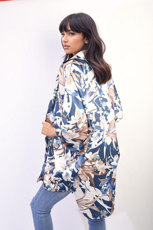 Floral Print Button Down Long Sleeve Oversized Top