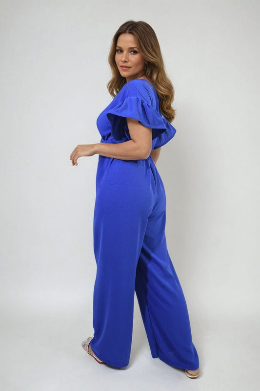 Ruffle Sleeve V-Neck Loose Waist Wide Leg Jumpsuit