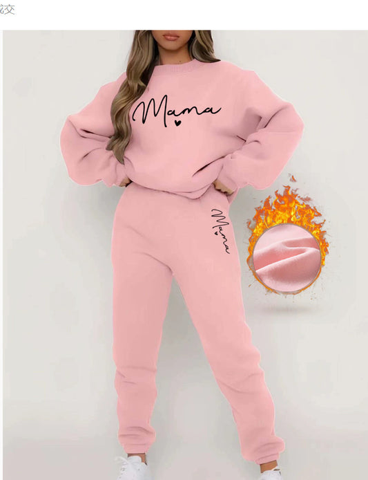 Casual Long Sleeve Printed Fleece Two-piece Set