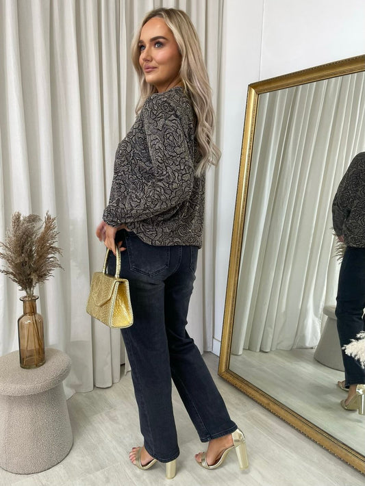 Off Shoulder Long Sleeve Draped Top with Wrap Front Detail