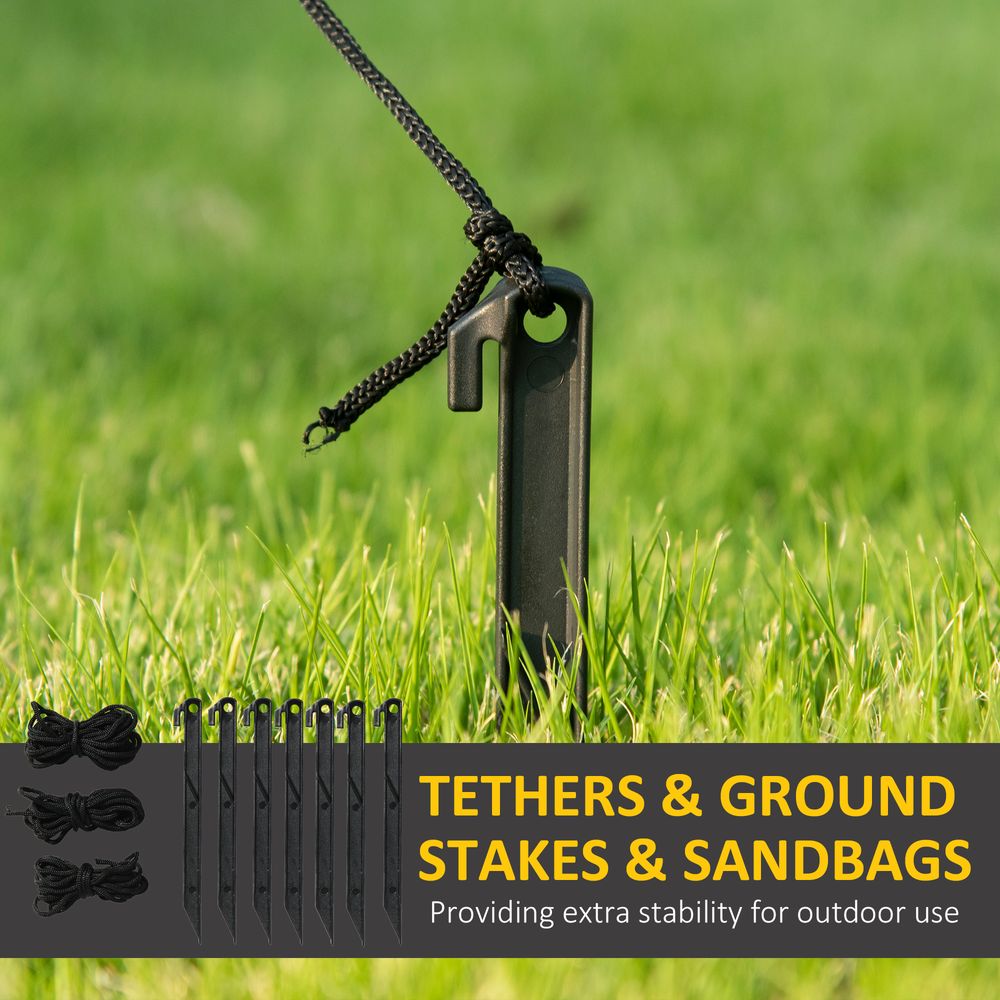 - Comprend sept piquets, trois cordons de serrage et quatre sacs de sable pour aider à le maintenir ancré lors des nuits venteuses