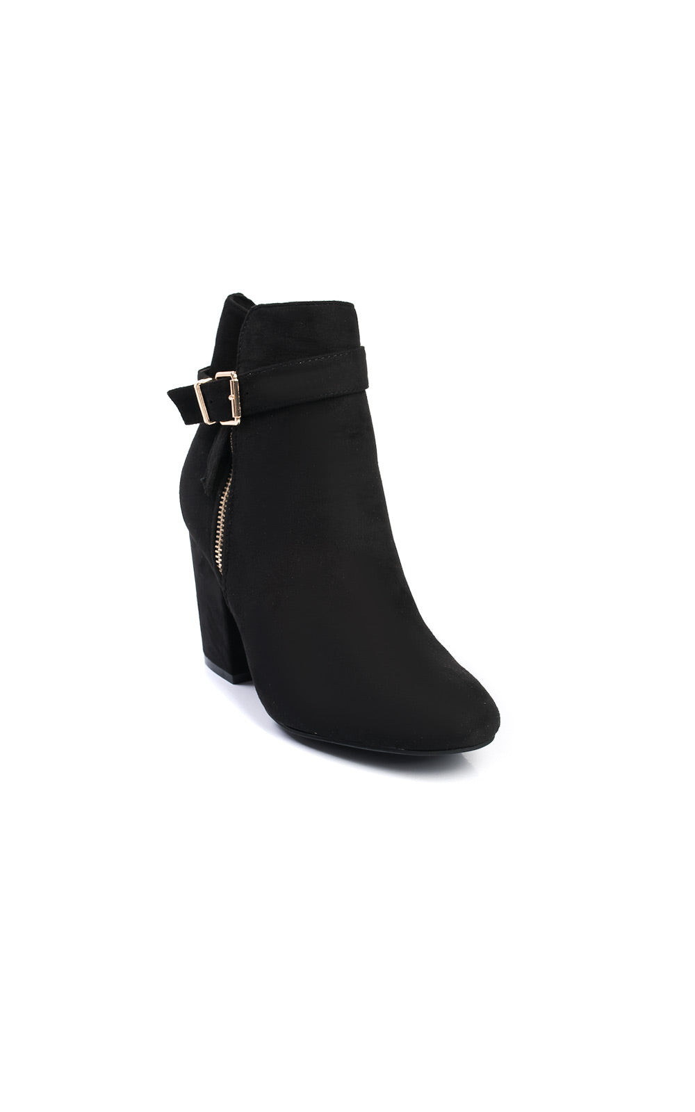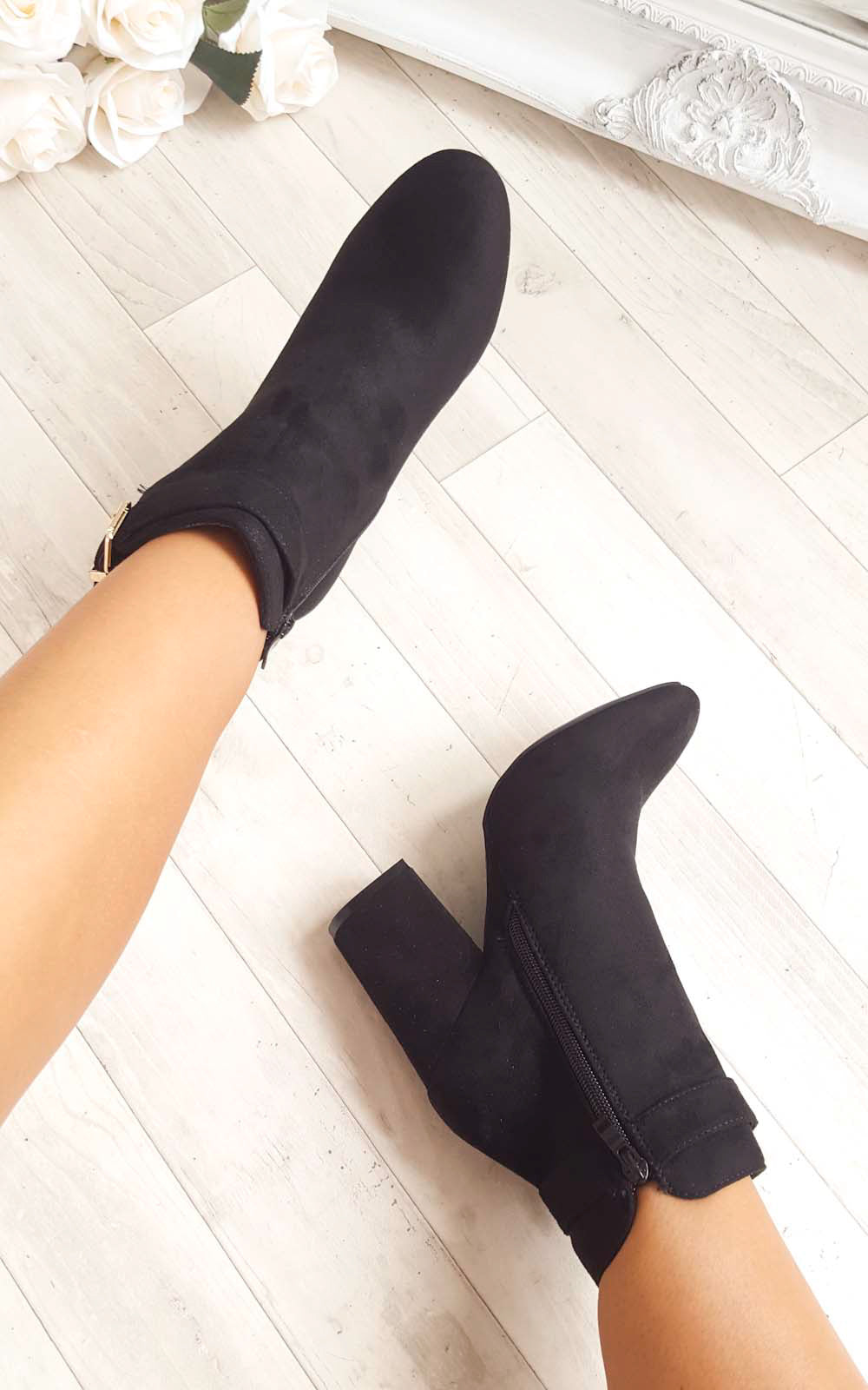 These boots are just unreal! They have a stunning faux suede finish and a block heel! They have a gold zip and strap detail with an inner zip. Pair these beauts with a pair of skinny's and oversized knitted jumper for an on-point A/W look! Faux Suede Approx. heel height is 3.5" Black True to size UK sizes