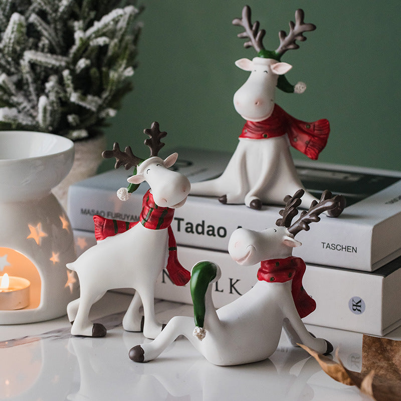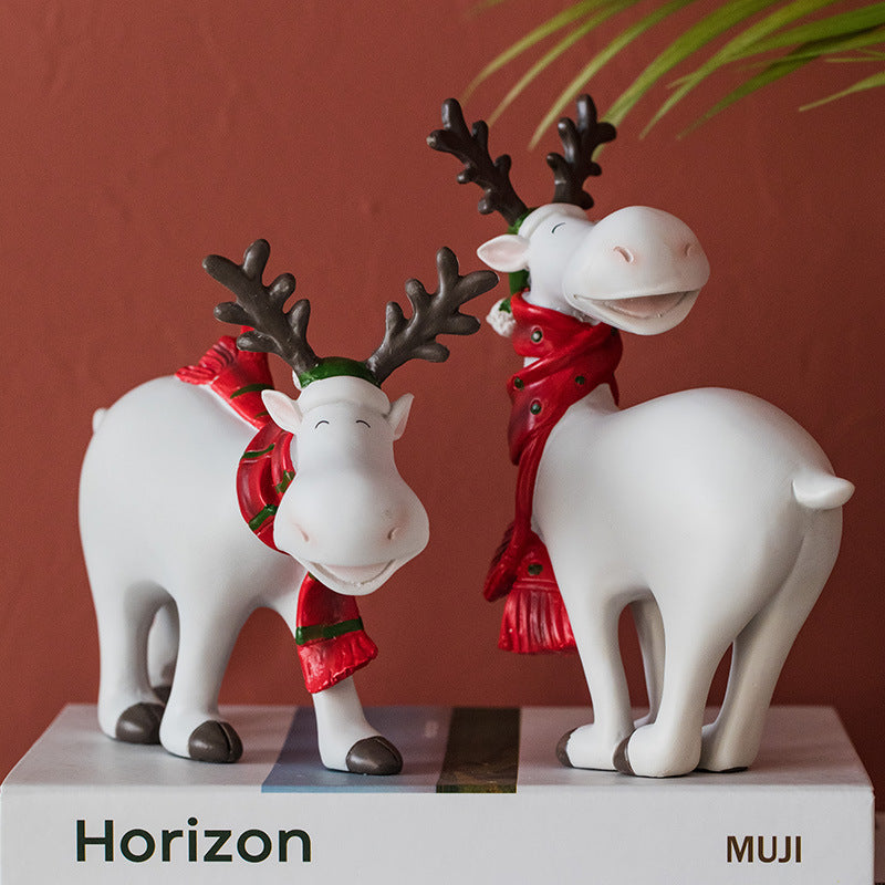 Christmas White Reindeer with Bow Bookcase Ornaments