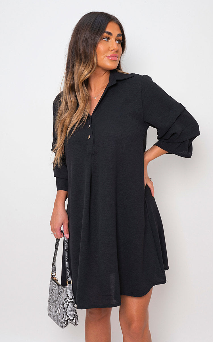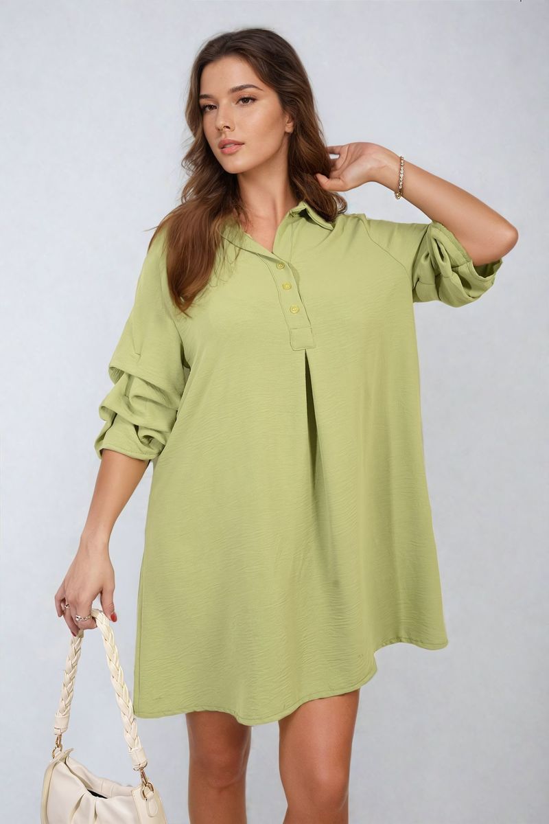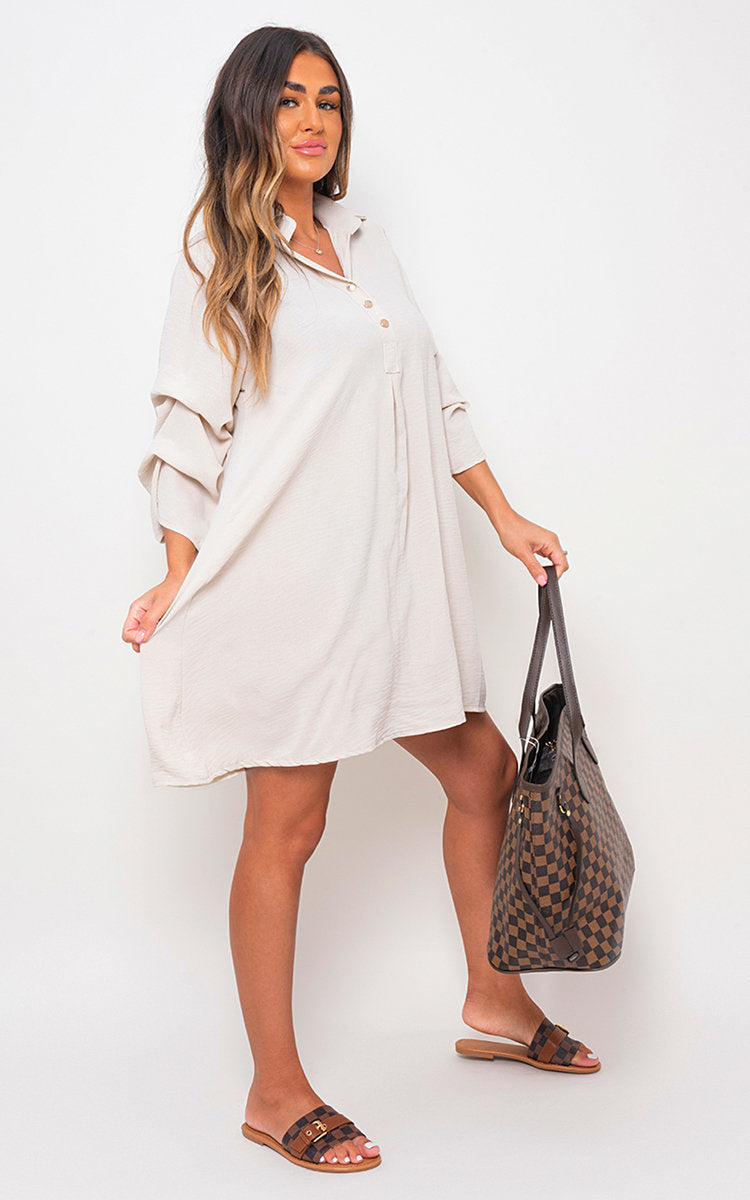 Check out the Hallie Collared Oversized Mini Dress! It's super comfy and perfect for any casual day out. Just throw it on and you're ready to go. Plus, the oversized fit makes it extra cozy. Grab yours and stay stylish effortlessly!