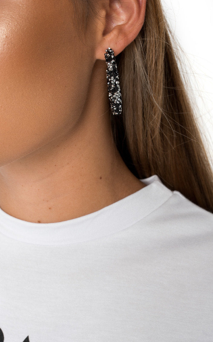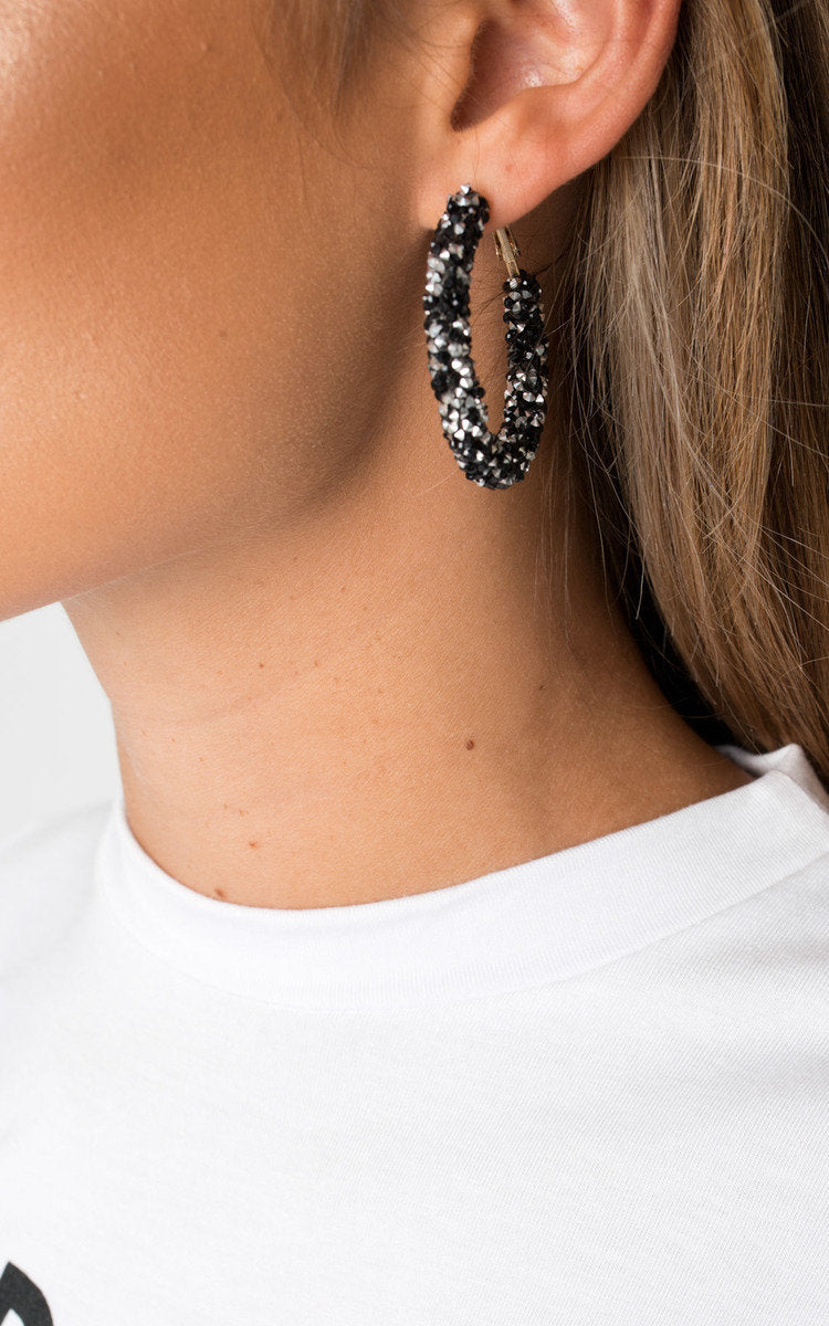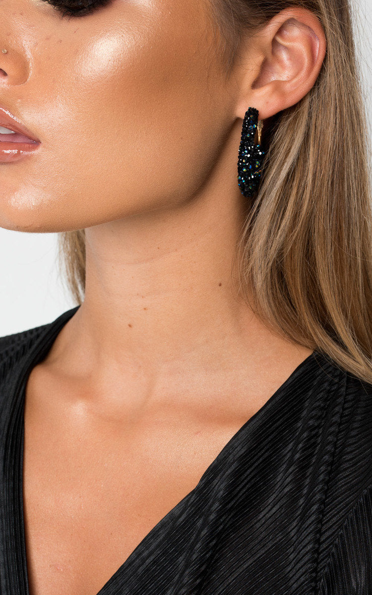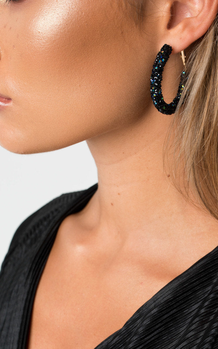 We are obsessed with our ELLIE crystal hoops! Featuring a hoop design, all over crystal embellishment and clasp closure. These are perfect to add to your little black dress for a glam luxe look!