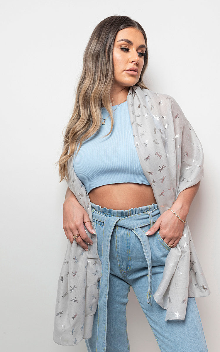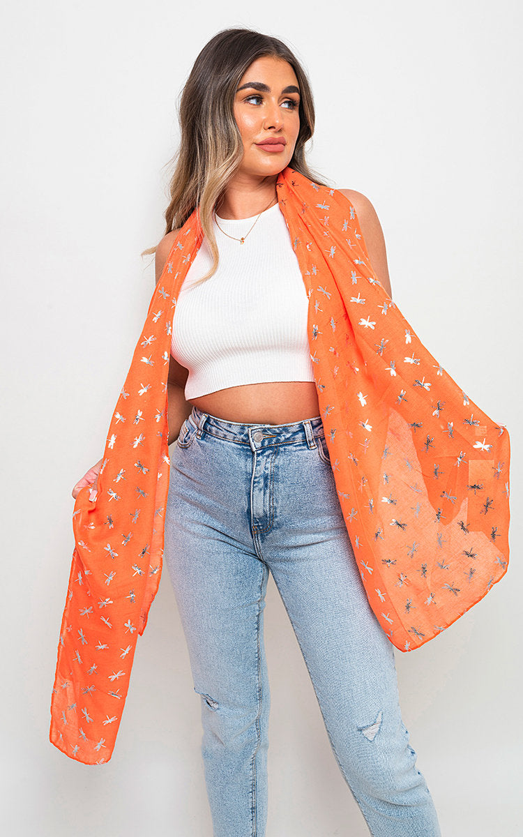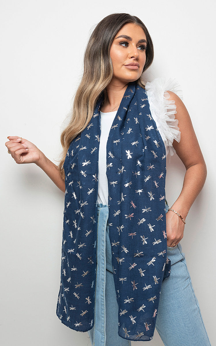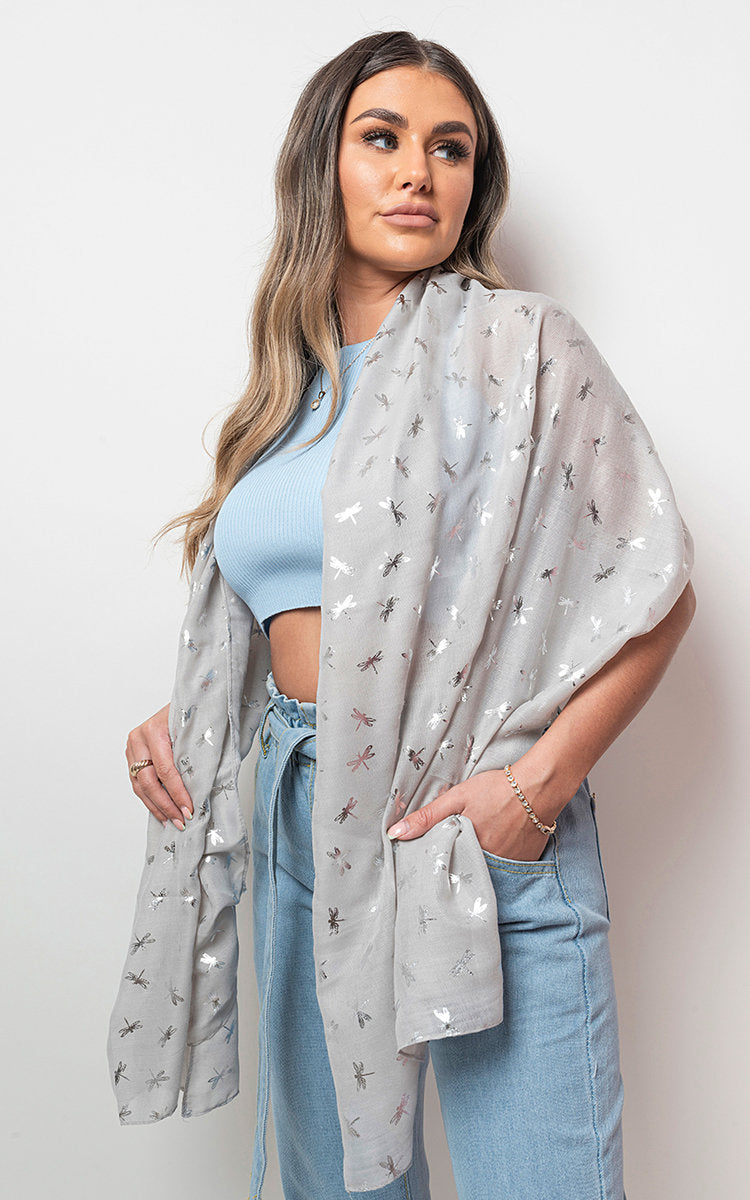 Get ready to flutter away with the Winnie Dragonfly Print Scarf Wrap Scarf!