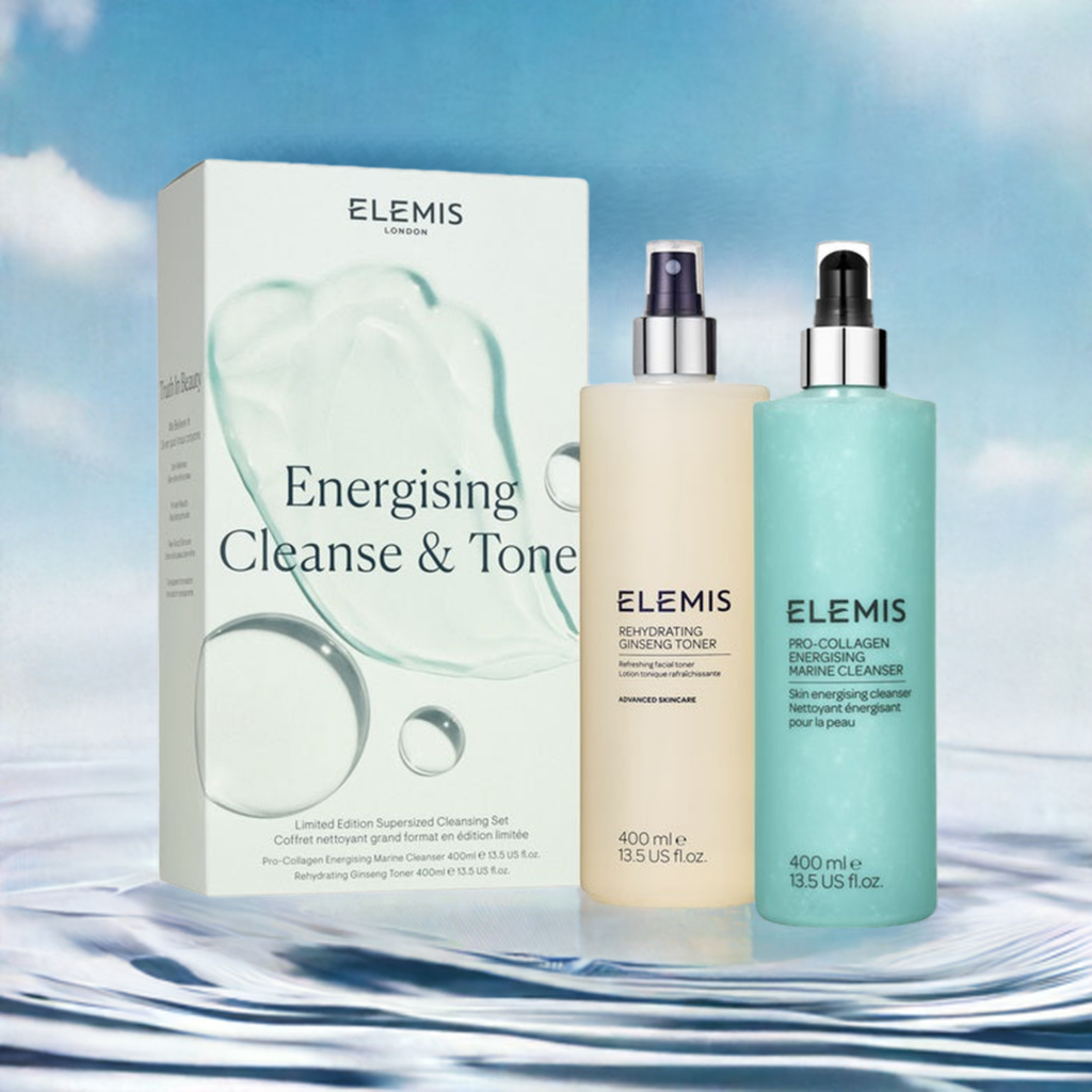 Elemis Energising Cleanse & Tone Duo 400ml Rehydrating Ginseng Toner + 400ml Pro-Collagen Energising Marine Cleanser