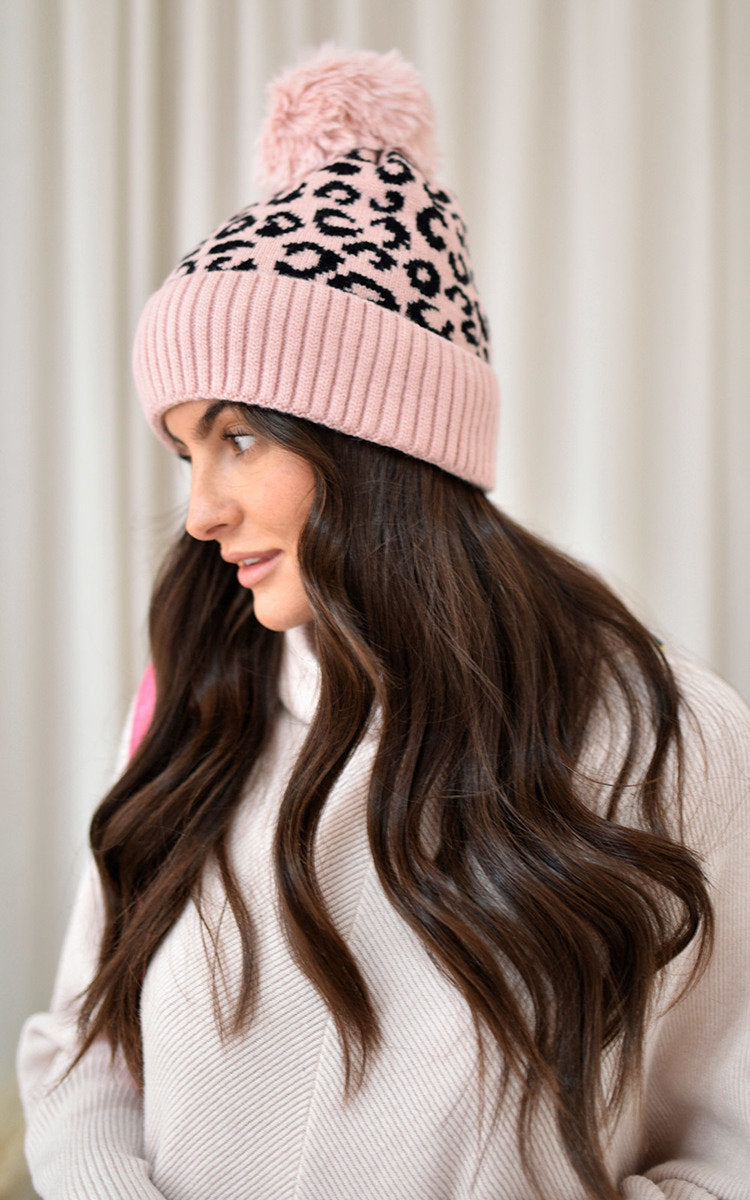 Ladies, keep your head and ears warm all winter long with this Edith Faux Fur Lined Beanie Leopard Hat! This hat is not only stylish and feminine but also incredibly warm and snug. The luxurious faux fur lining provides an extra layer of insulation against the cold, while the cute pom-pom detail adds a touch of fun and whimsy. Whether you're hitting the slopes or just running errands around town, this hat will keep you toasty from head to toe. So don't let the chilly weather keep you from looking your best - grab an Edith hat today!