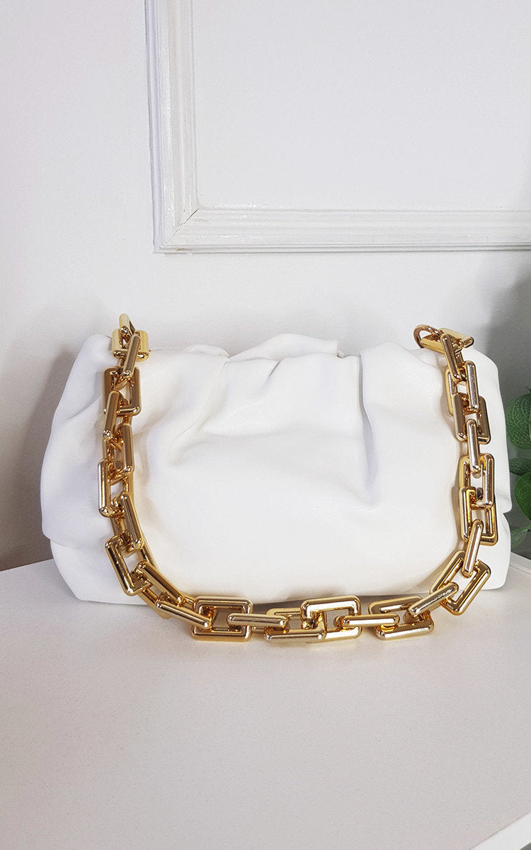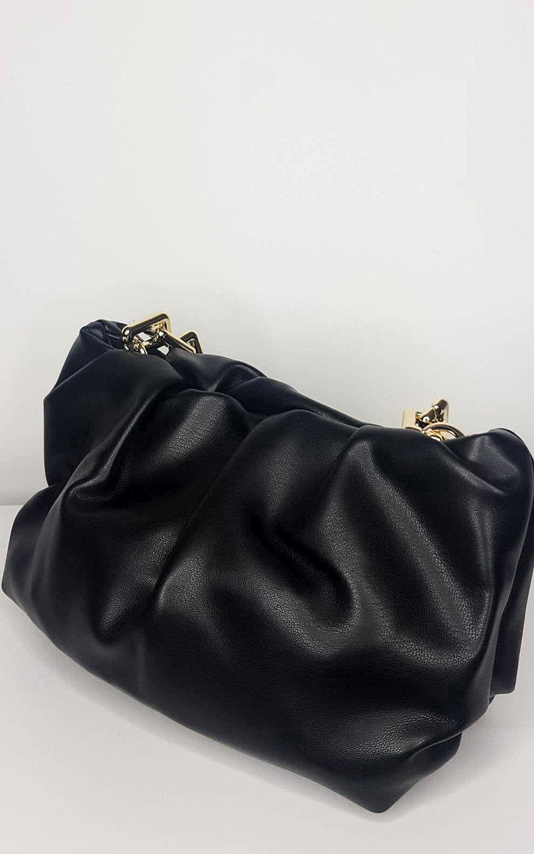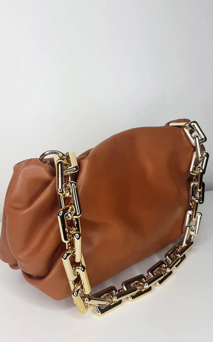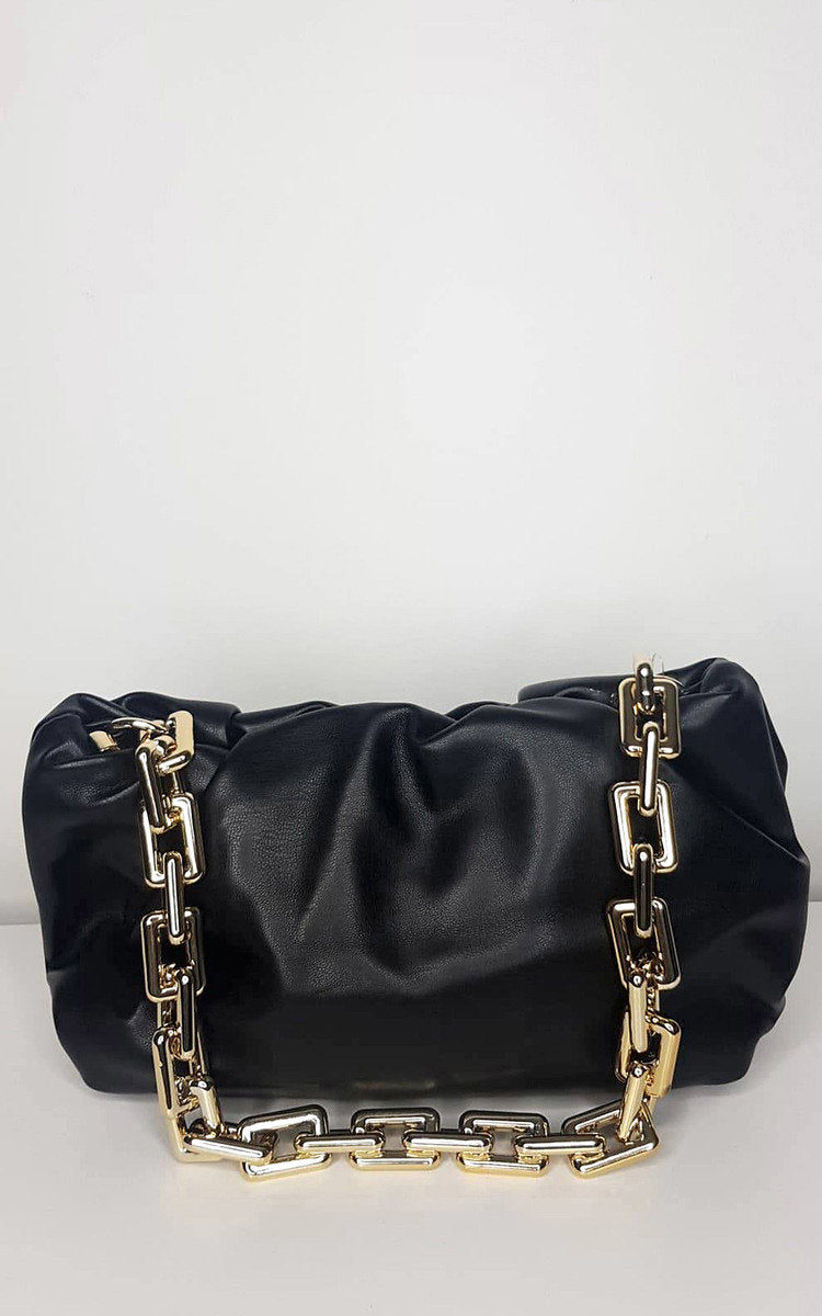 our FARAH handbag features all over faux leather material and chain detail handle. Pair with a LBD this season for a chic style.