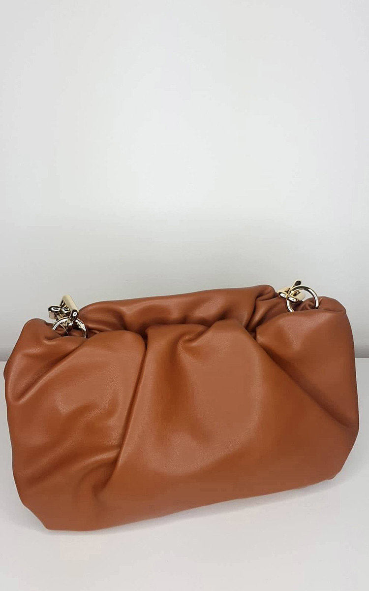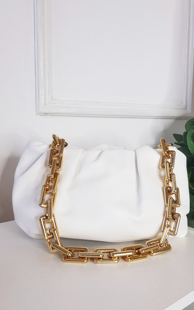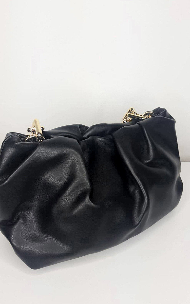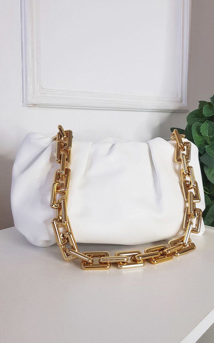 our FARAH handbag features all over faux leather material and chain detail handle. Pair with a LBD this season for a chic style.