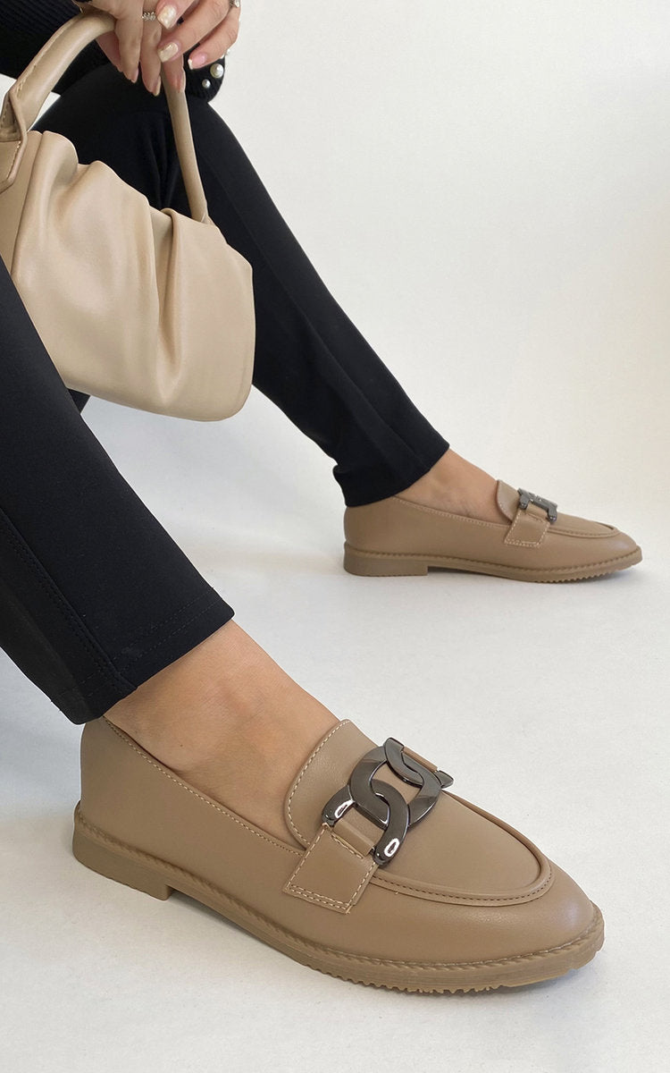 Introducing our brand new Harriet Faux Leather Flat Shoes with Chain Detail! Our newest addition to the ikrush flats collection, these shoes are perfect for dressing up or down! Made from high quality faux leather, they feature a pointed toe and a dainty chain detail across the vamp. dress them up with a pretty dress and statement earrings for your next special occasion, or keep it casual with jeans and a tee. Either way, you'll be sure to turn heads!