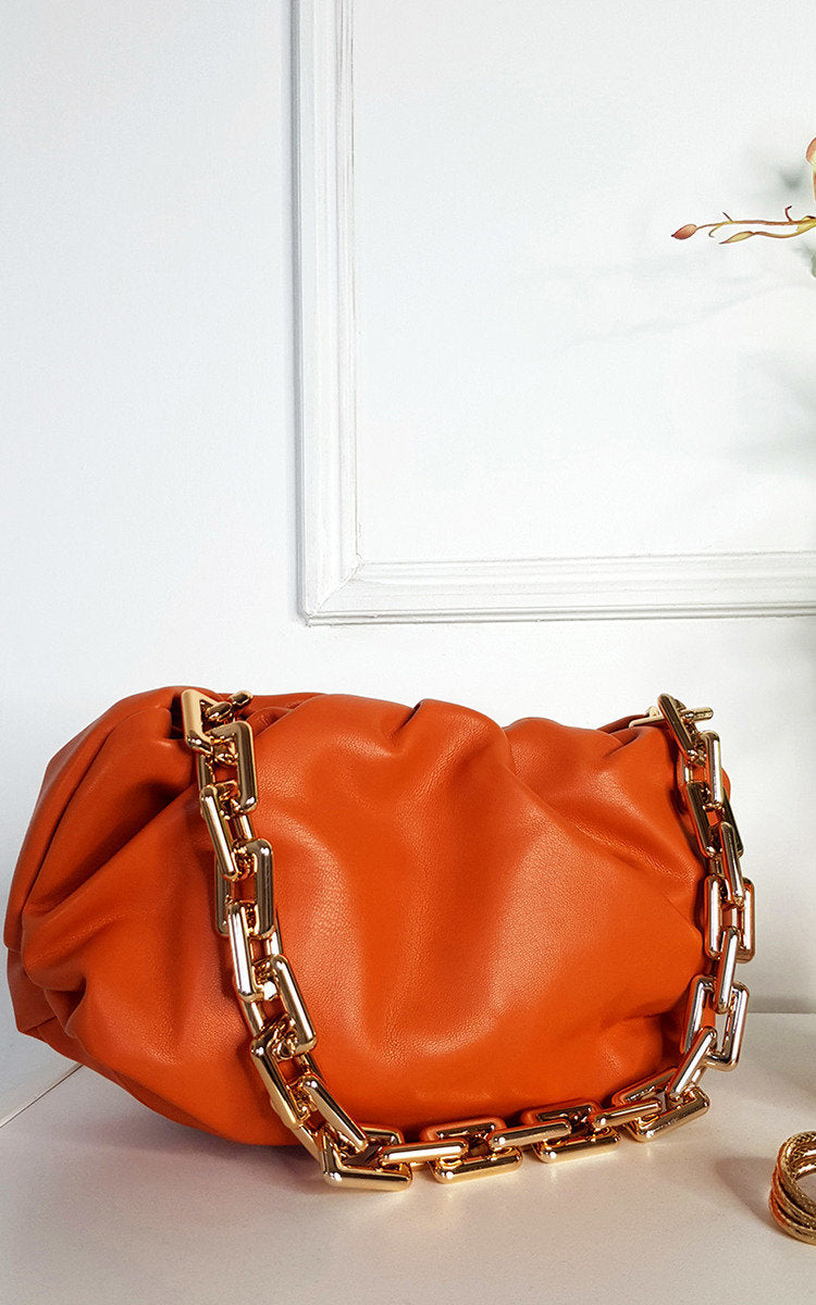 Say goodbye to bulky bags and say hello to the chic Eve Faux Leather Shoulder bag. This fashionable bag is light-weight and roomy enough for everything you need, while making a statement with its faux leather exterior and gold chunky chain handle. The colour choice makes it the perfect accessory for this season too!