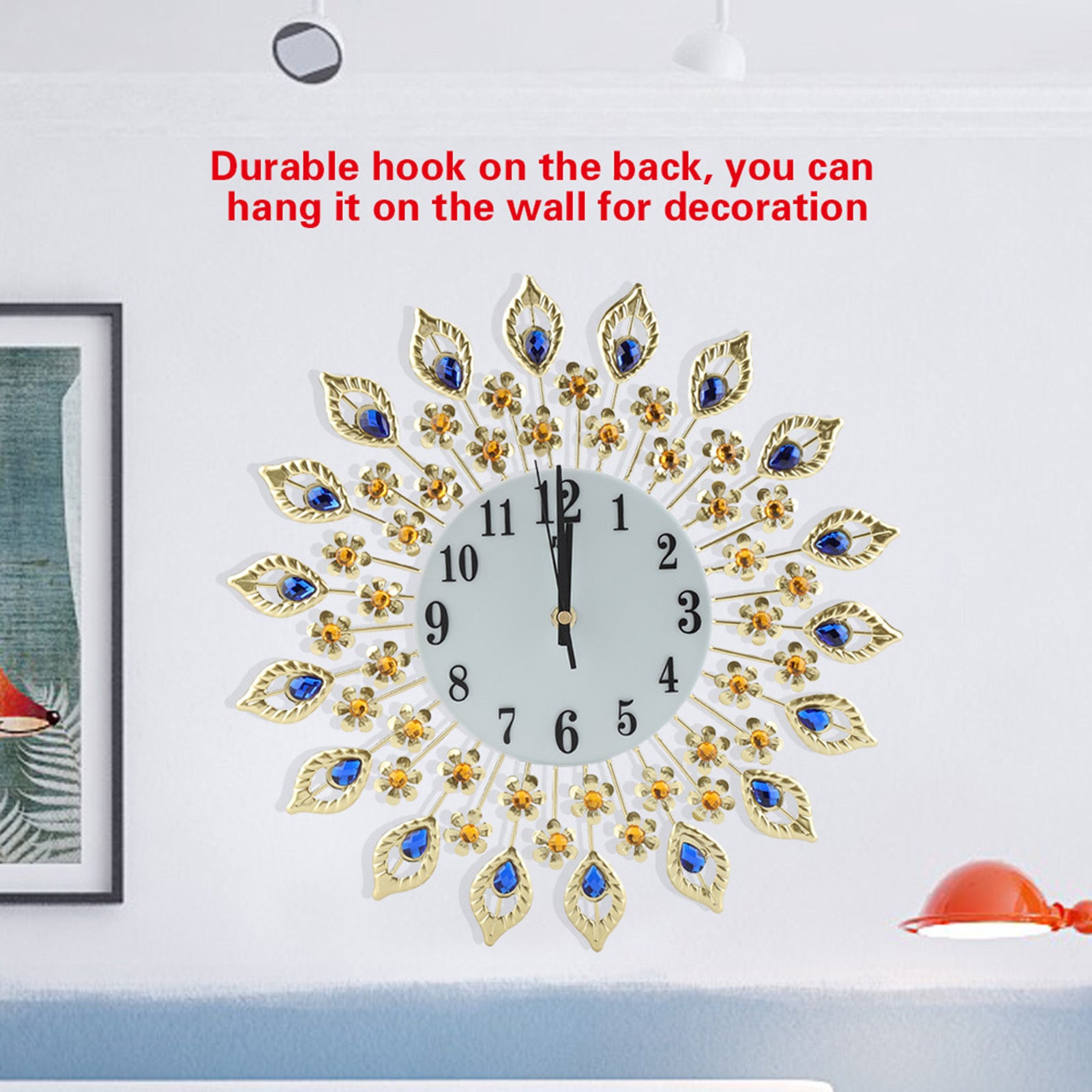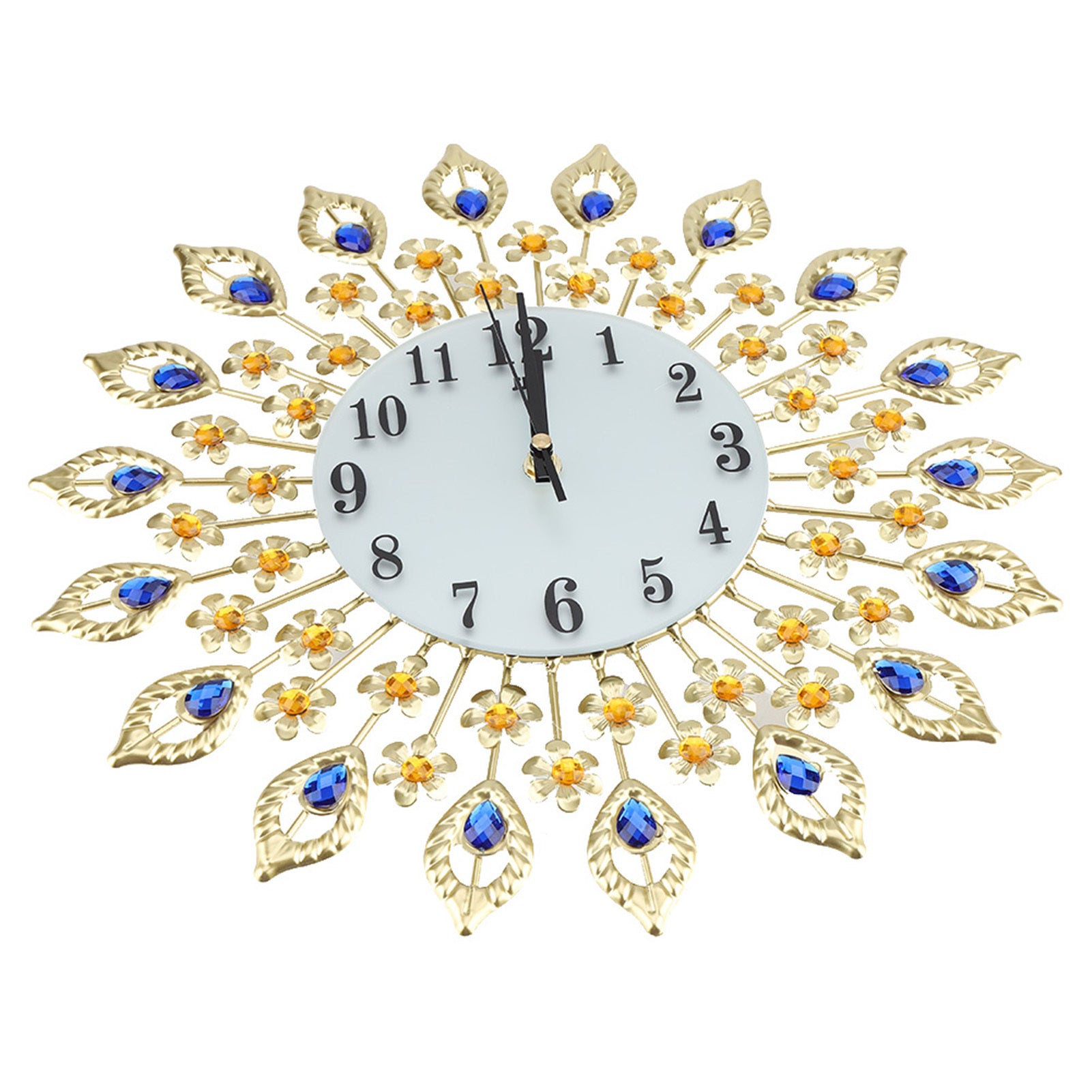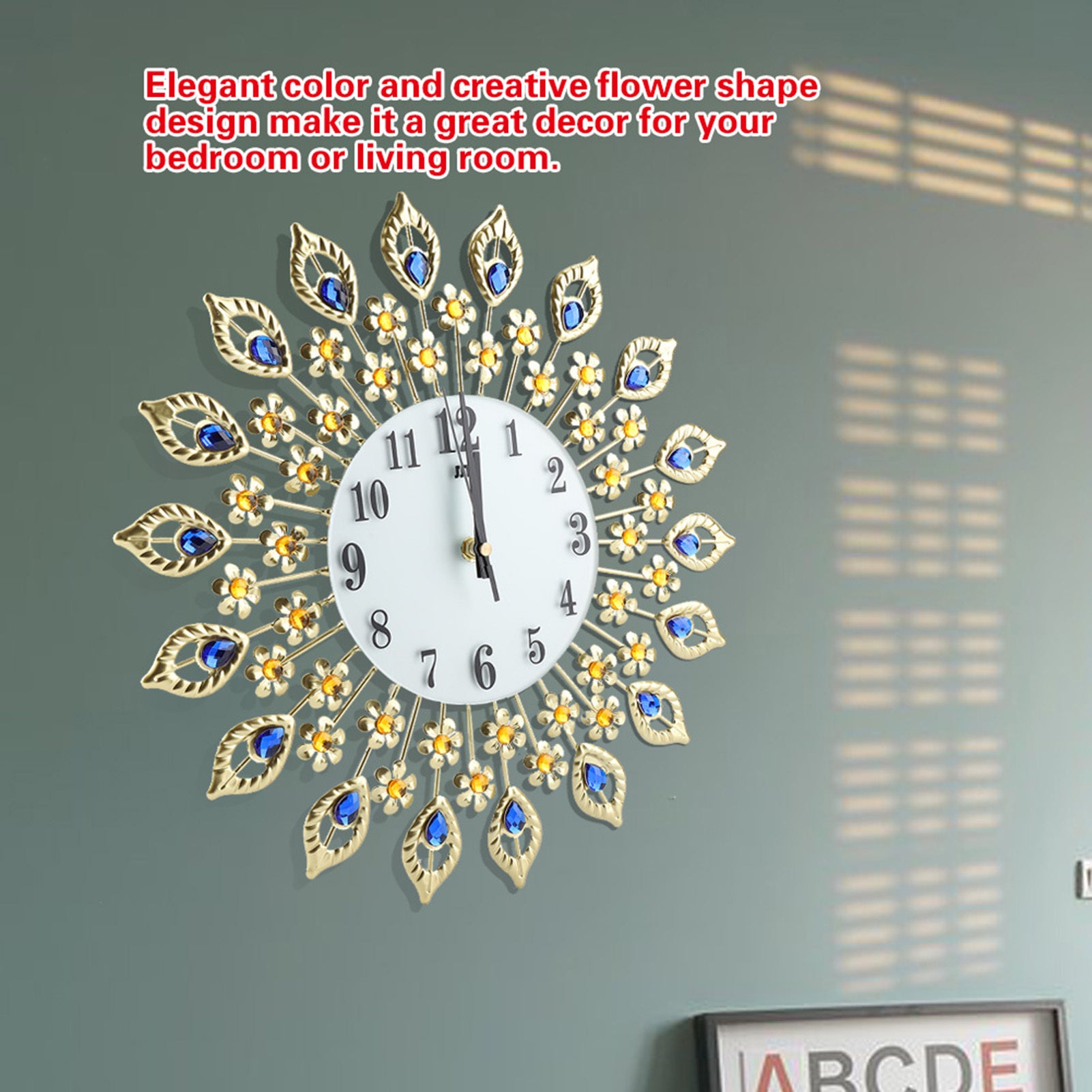 Overview: Are you fed up with the monotonous clock in your living room? Want some beautiful addition? Well, then you gonna love this creative flower-shaped wall clock! Made of high quality iron material, smooth surface, durability can make sure that you can use it for a long time. Elegant color and creative flower shape design make it a great decor for your bedroom or living room.Surrounded by many diamond jeweled, beautiful and practical, can also serves as a wonderful gift for your friends or families. Come and get one, and your bedroom will be refreshed!!! Features: Made of high quality iron material, smooth surface, durability can make sure that you can use it for a long time. All finishes are non-toxic, safe and Eco-friendly. You don't worry it will do harms to your health and your wall. Elegant color and creative flower shape design make it a great decor for your bedroom or living room. Durable hook on the back, you can hang it on the wall for decoration. Surrounded by many diamond jeweled, beautiful and practical, can also serves as a wonderful gift for your friends or families. Specification: Material: Metal Color: As picture Battery: 1pc AAA battery(Not included) Diameter: 37.5cm / 14.8inch(Approx.) Package list: 1 x Flower-shaped wall clock(Battery no included) Notice: Please allow 1-3cm error due to manual measurement and make sure you do not mind before ordering. Please understand that colors may exist chromatic aberration as the different placement of pictures.Please note that the new type and old type of this product will be sent randomly, and make sure you will not mind before ordering.