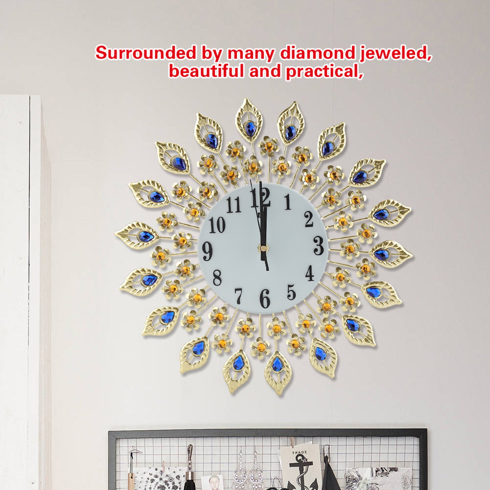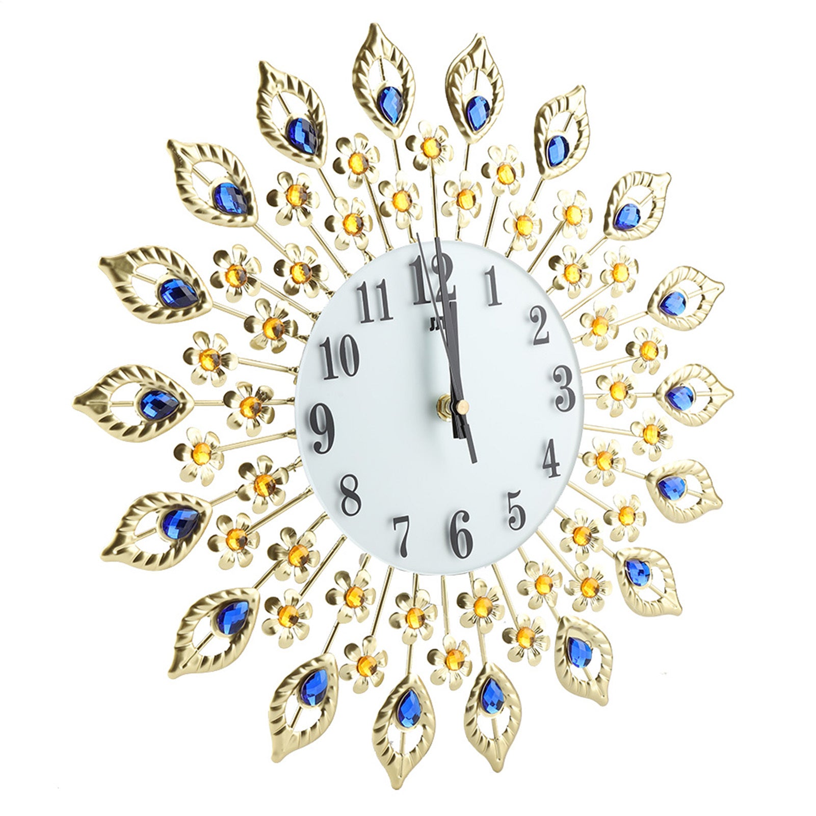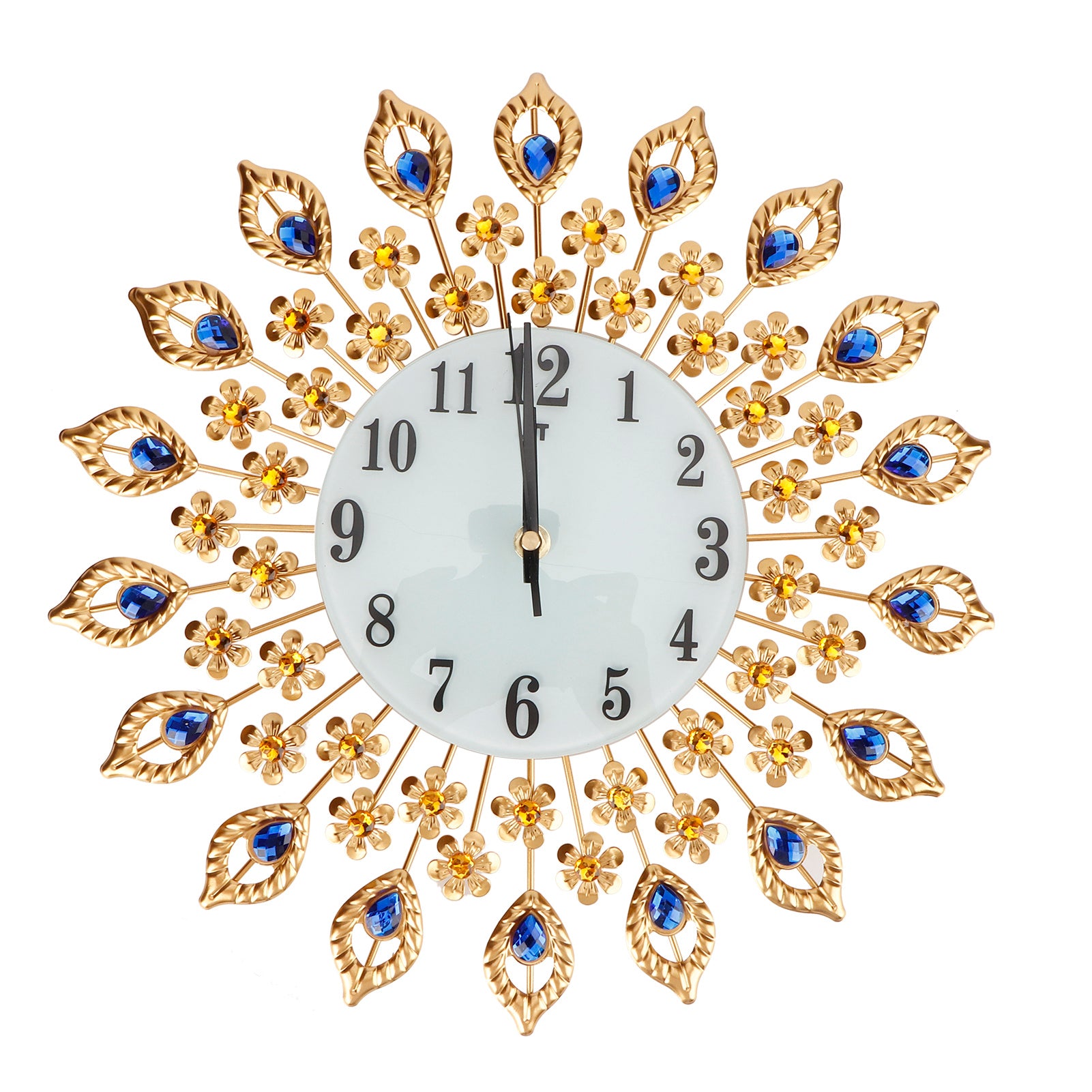 Overview: Are you fed up with the monotonous clock in your living room? Want some beautiful addition? Well, then you gonna love this creative flower-shaped wall clock! Made of high quality iron material, smooth surface, durability can make sure that you can use it for a long time. Elegant color and creative flower shape design make it a great decor for your bedroom or living room.Surrounded by many diamond jeweled, beautiful and practical, can also serves as a wonderful gift for your friends or families. Come and get one, and your bedroom will be refreshed!!! Features: Made of high quality iron material, smooth surface, durability can make sure that you can use it for a long time. All finishes are non-toxic, safe and Eco-friendly. You don't worry it will do harms to your health and your wall. Elegant color and creative flower shape design make it a great decor for your bedroom or living room. Durable hook on the back, you can hang it on the wall for decoration. Surrounded by many diamond jeweled, beautiful and practical, can also serves as a wonderful gift for your friends or families. Specification: Material: Metal Color: As picture Battery: 1pc AAA battery(Not included) Diameter: 37.5cm / 14.8inch(Approx.) Package list: 1 x Flower-shaped wall clock(Battery no included) Notice: Please allow 1-3cm error due to manual measurement and make sure you do not mind before ordering. Please understand that colors may exist chromatic aberration as the different placement of pictures.Please note that the new type and old type of this product will be sent randomly, and make sure you will not mind before ordering.