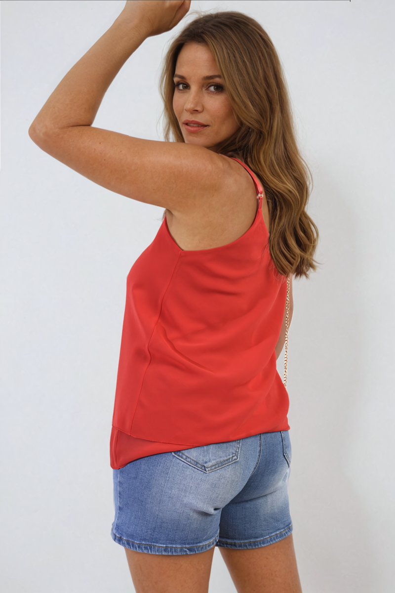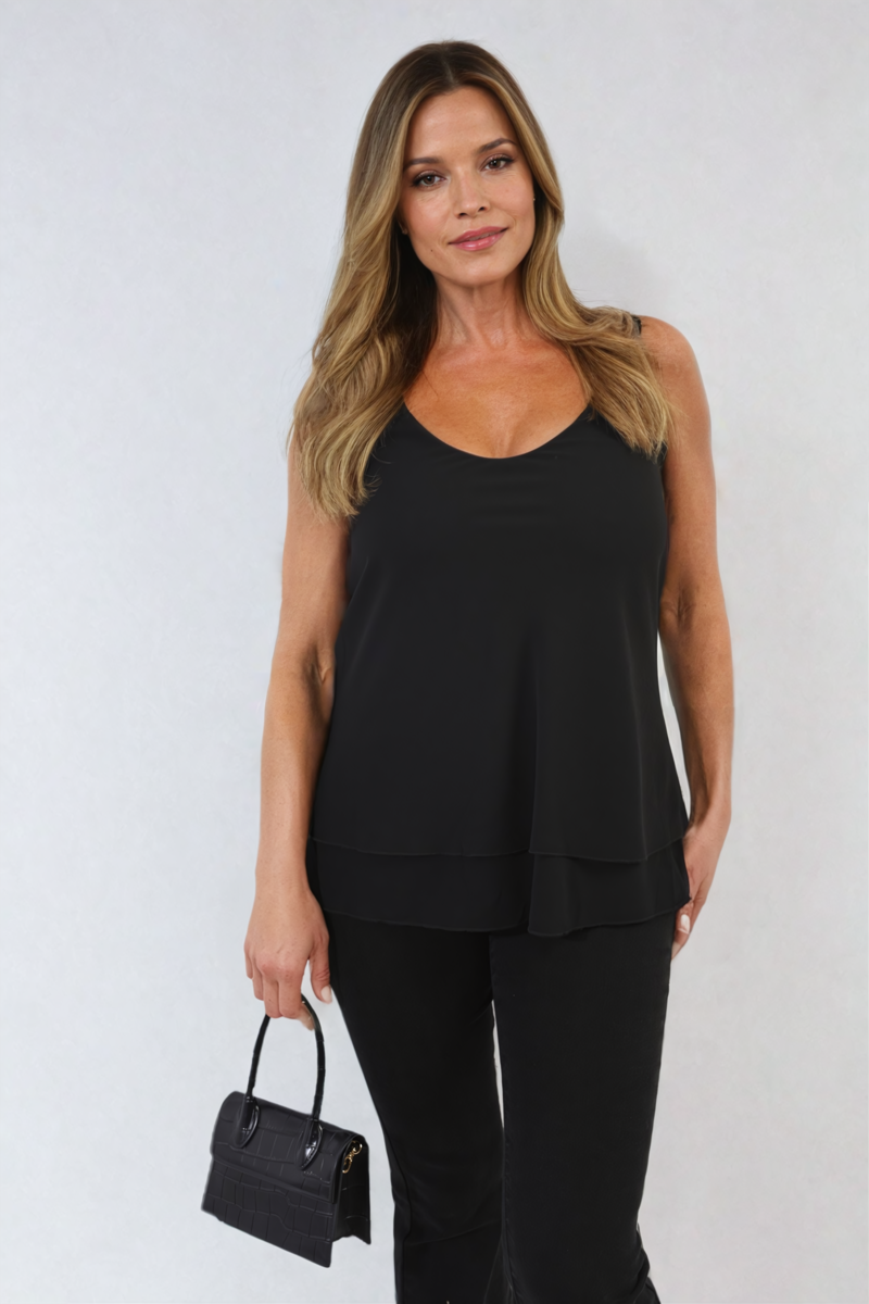 Step into summer with confidence and grace in the Amiyah Layered Spaghetti Strap Top, a versatile piece that transitions seamlessly from day to night. The intricate layering detail adds a unique charm, perfect for those who appreciate attention to design and effortless elegance.