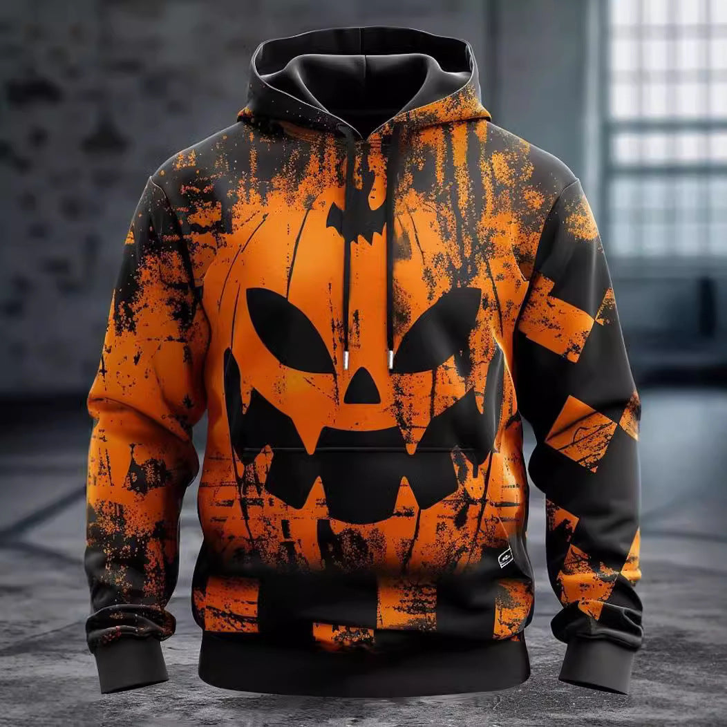 Introducing our new Men's Hooded Sweater, featuring a spooky 3D printed design that's perfect for Halloween. Stay comfortable and stylish with its long sleeves and hood. Add a colorful touch to your wardrobe with this one-of-a-kind sweater.