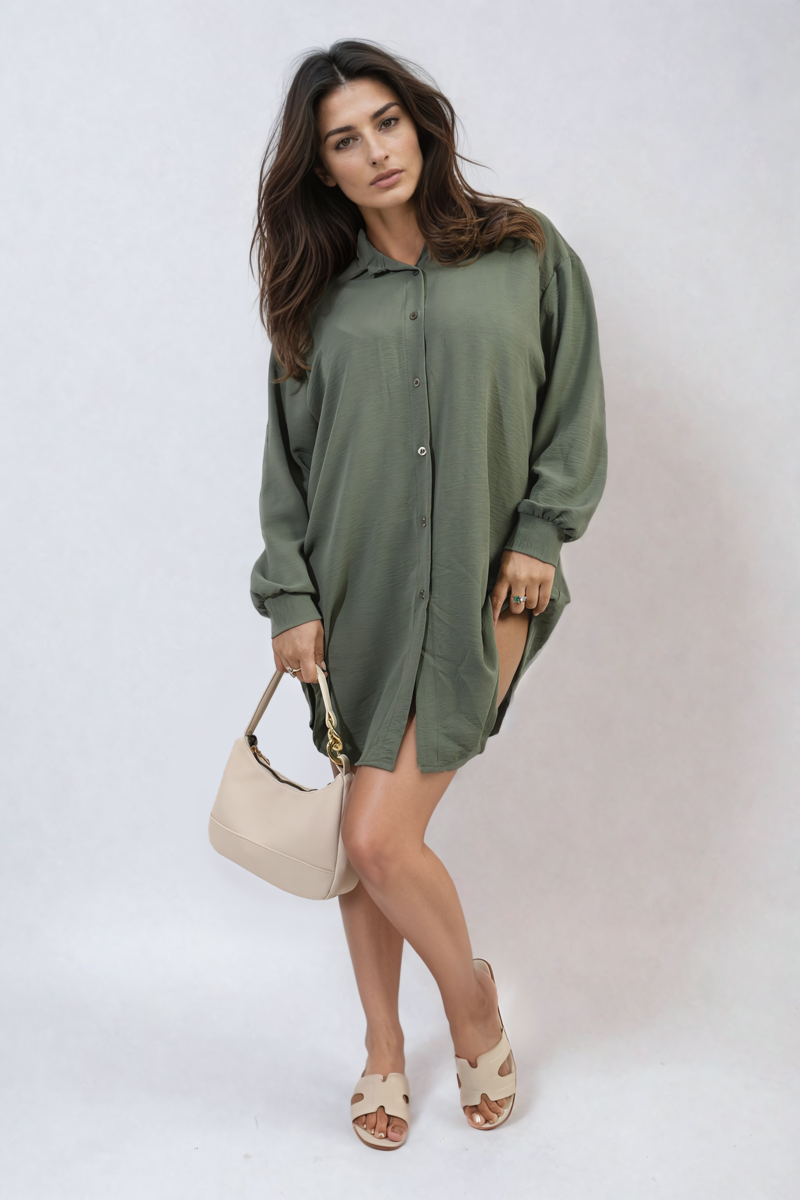 Be the center of attention with this stunning and fashion-forward shirt. The Gracie shirt is designed to make a bold statement and add a touch of glamour to any outfit. With its oversized fit and long sleeves, it offers both comfort and style for any occasion.