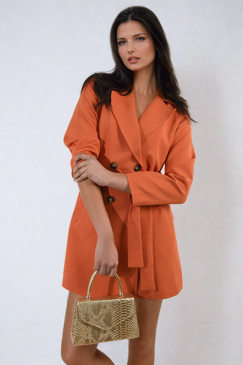 Elevate your look with the Raven Oversized Waist Tie Button Detail Blazer Jacket. This stylish jacket features trendy button details and a waist tie for a chic, tailored fit. Comfy and versatile, it's perfect for adding a touch of sophistication to any outfit.