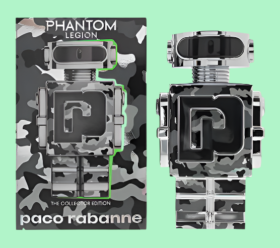 Introducing Phantom Legion, the latest addition to the Paco Rabanne fragrance collection. This unique scent comes in a collector's edition robot shaped bottle and features a refreshing blend of lemon, lavender, and earthy notes. With a base of vanilla and vetiver, experience the bold and sophisticated aroma of Phantom Legion.