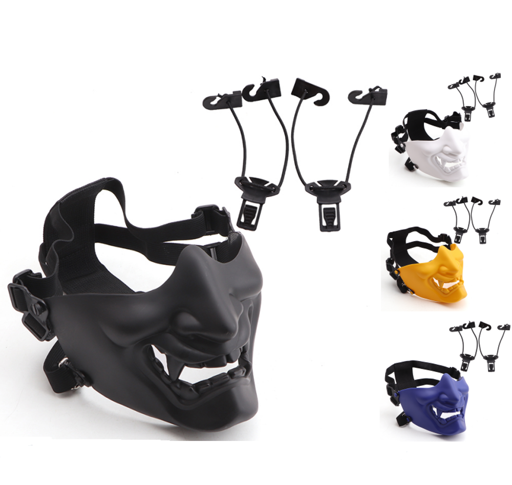 REikirc Masque tactique demi-visage démon samouraï Airsoft BB Gun Masque militaire CS Party Cosplay Halloween Masques