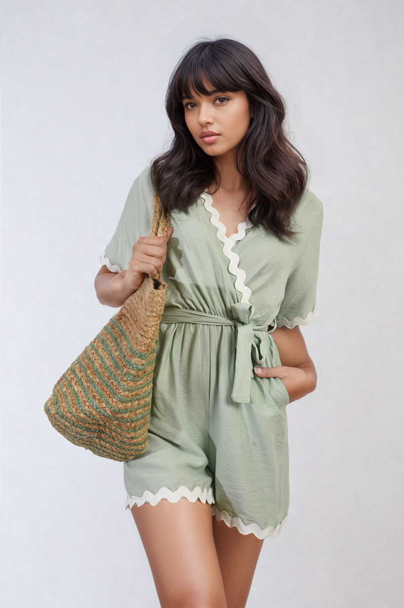 Scalloped Trim Wrap Over Playsuit