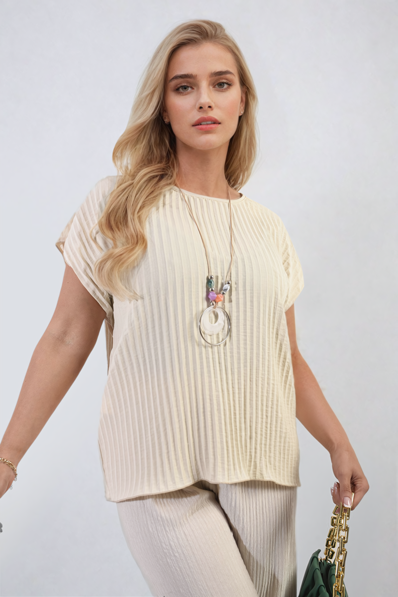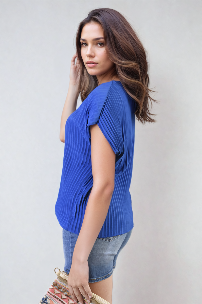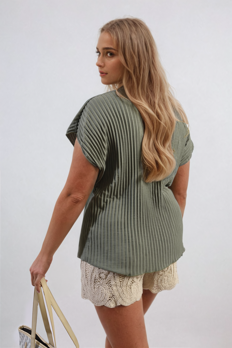 Introducing the Greta Short Sleeve Pleated Top – your ultimate summer essential!