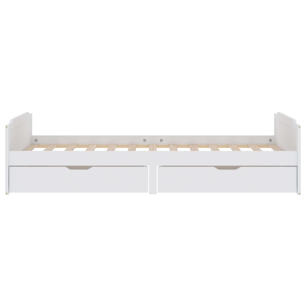 This bed frame is a practical and decorative addition to your bedroom. Premium material: Solid pine wood is a beautiful natural material. Pine wood has a straight grain, and the knots give the material its signature, rustic look.Sturdy slats: The sturdy slats offer the needed support and comfort. You can enjoy great sleeping experience every night on this bed!Storage function: The included bed drawers provide ample storage space for storing your essentials, keeping your room clean and tidy. Note:The delivery includes the bed frame only. Mattresses are not included. You can check our shop for the matching mattresses.