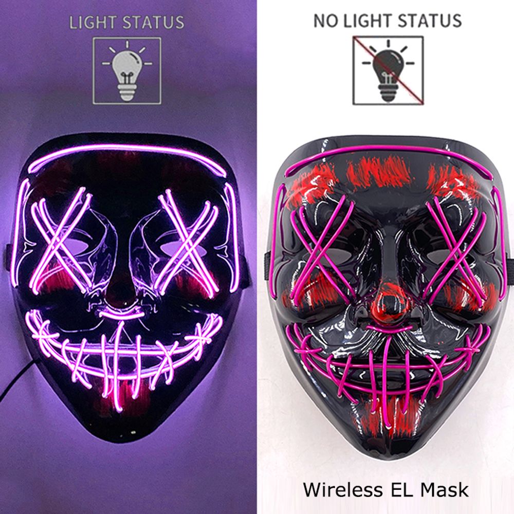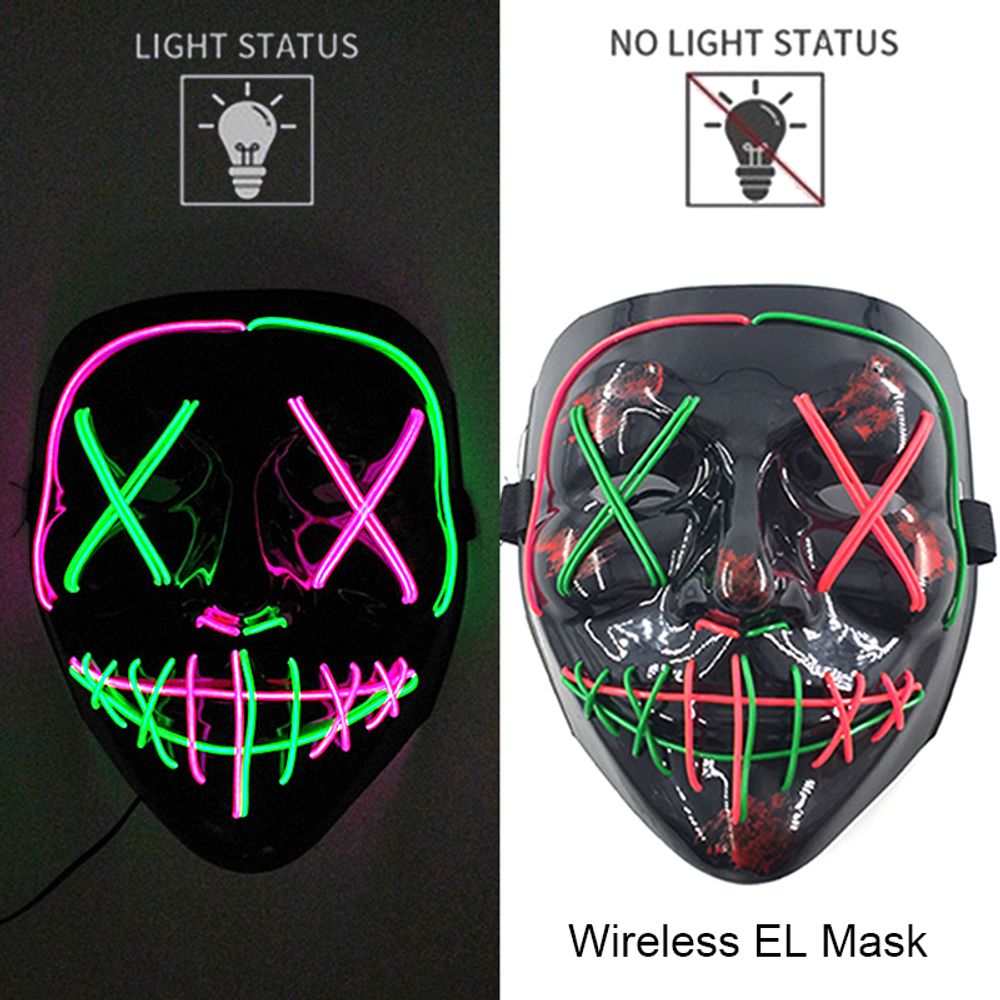 Masque de purge à LED néon sans fil pour Halloween, masques de fête masqués, masque d'horreur lumineux qui pousse dans le noir