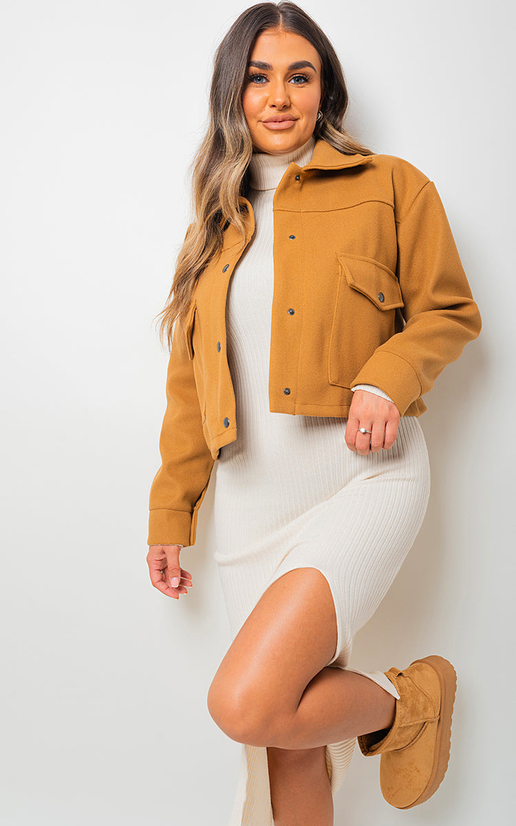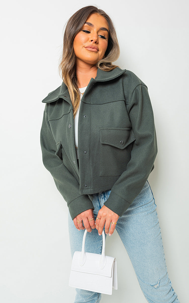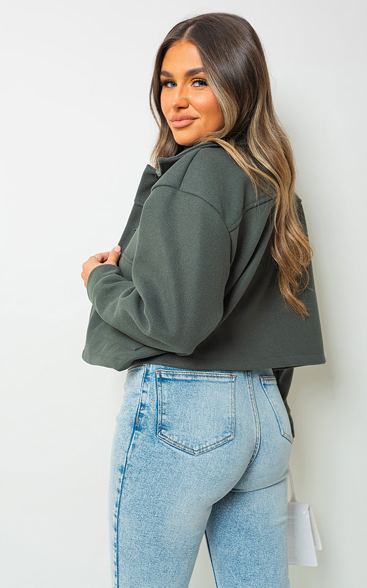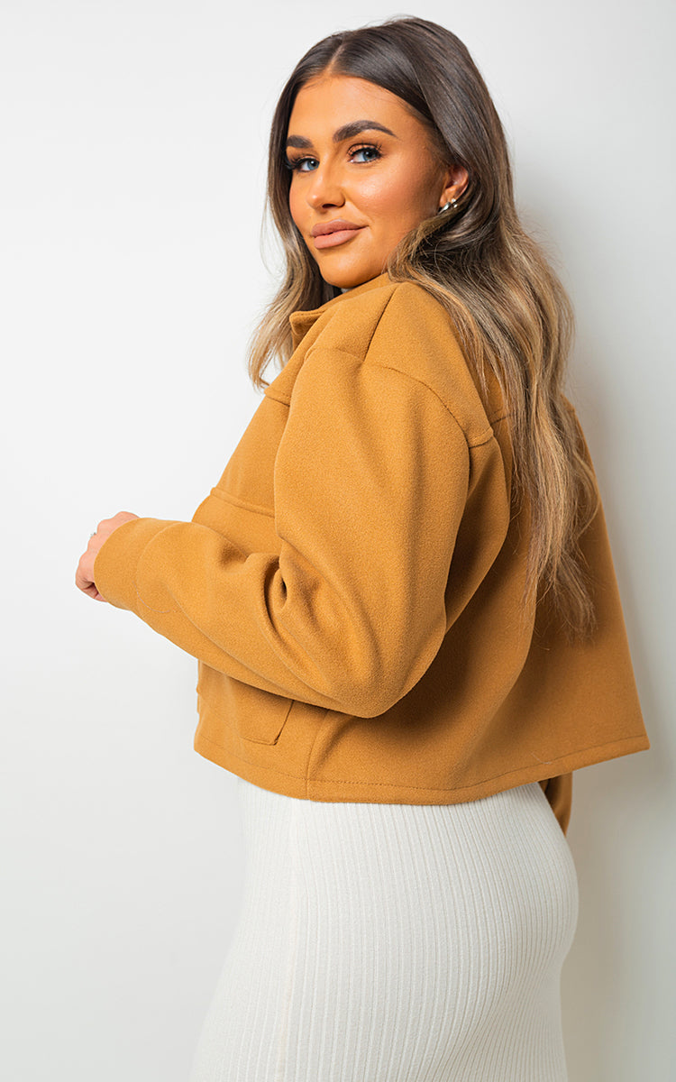 Introducing the Jada Cropped Long Sleeve Collared Jacket with Pockets!