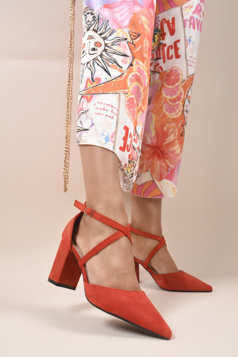 Cross Strap Block Heels