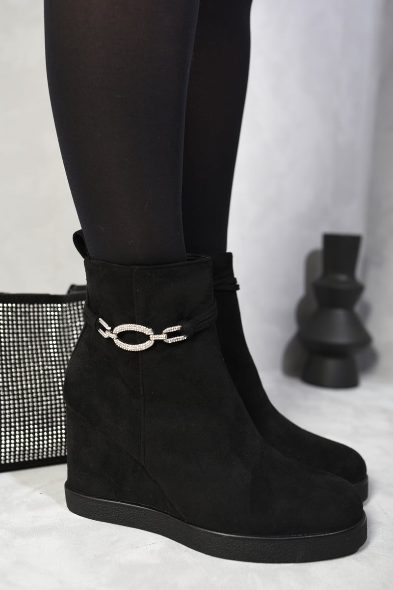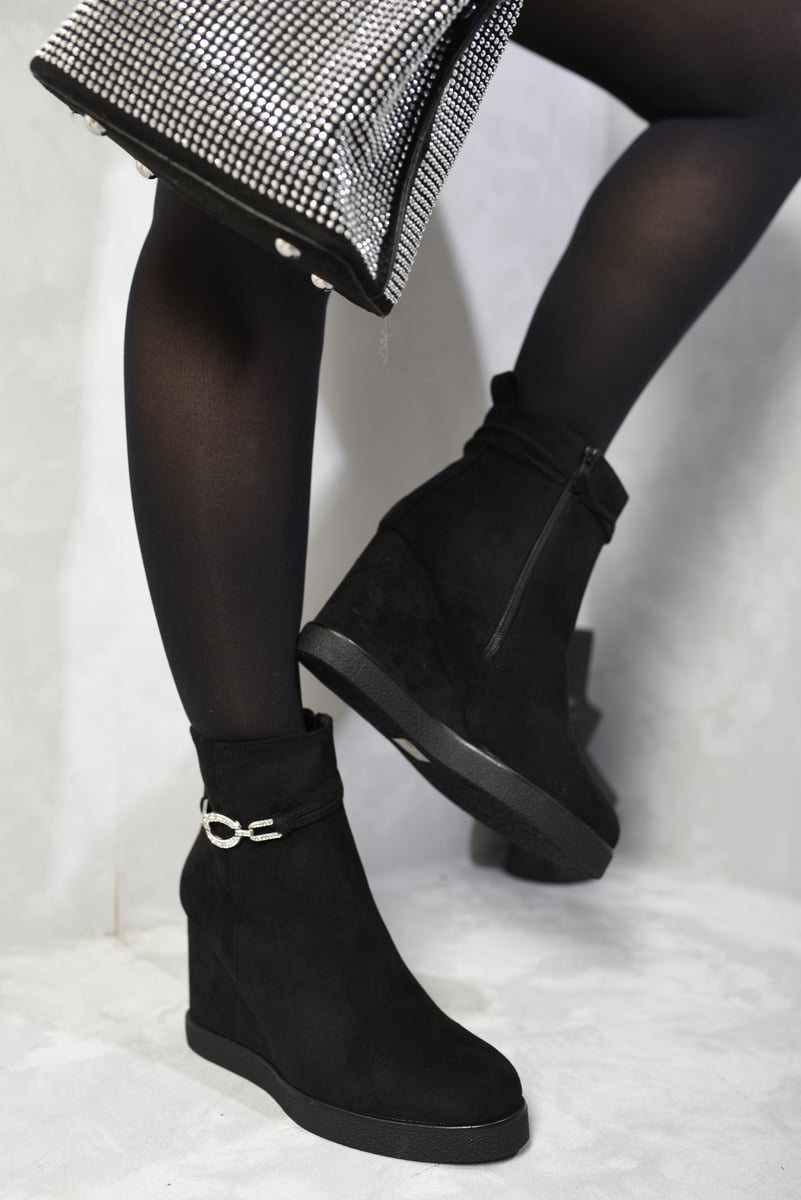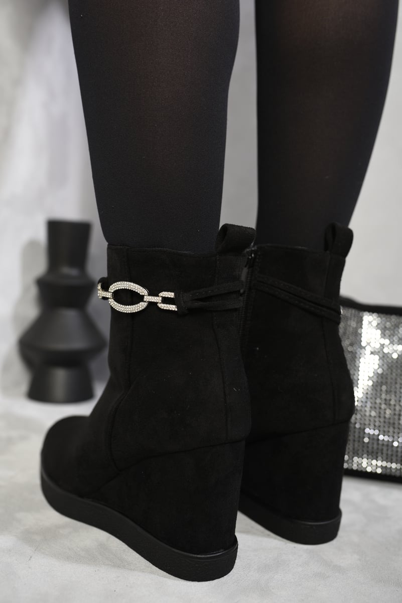 Decorative Strap Wedge Heel Platform Ankle Boots