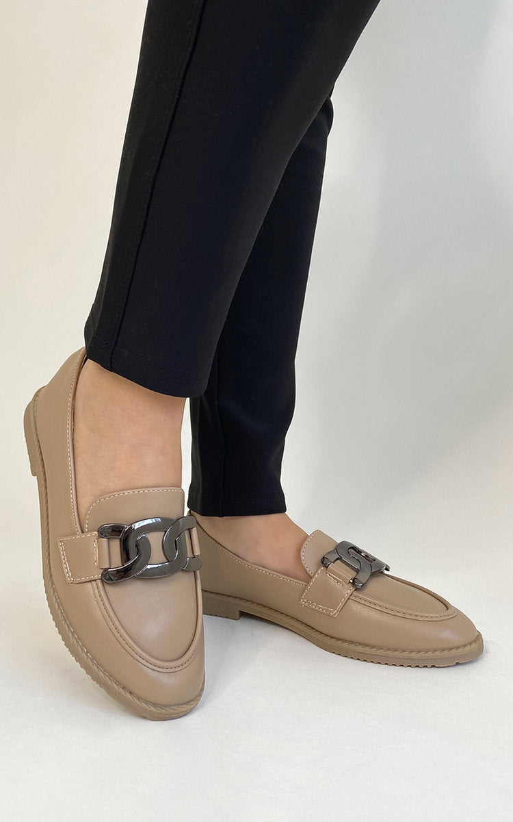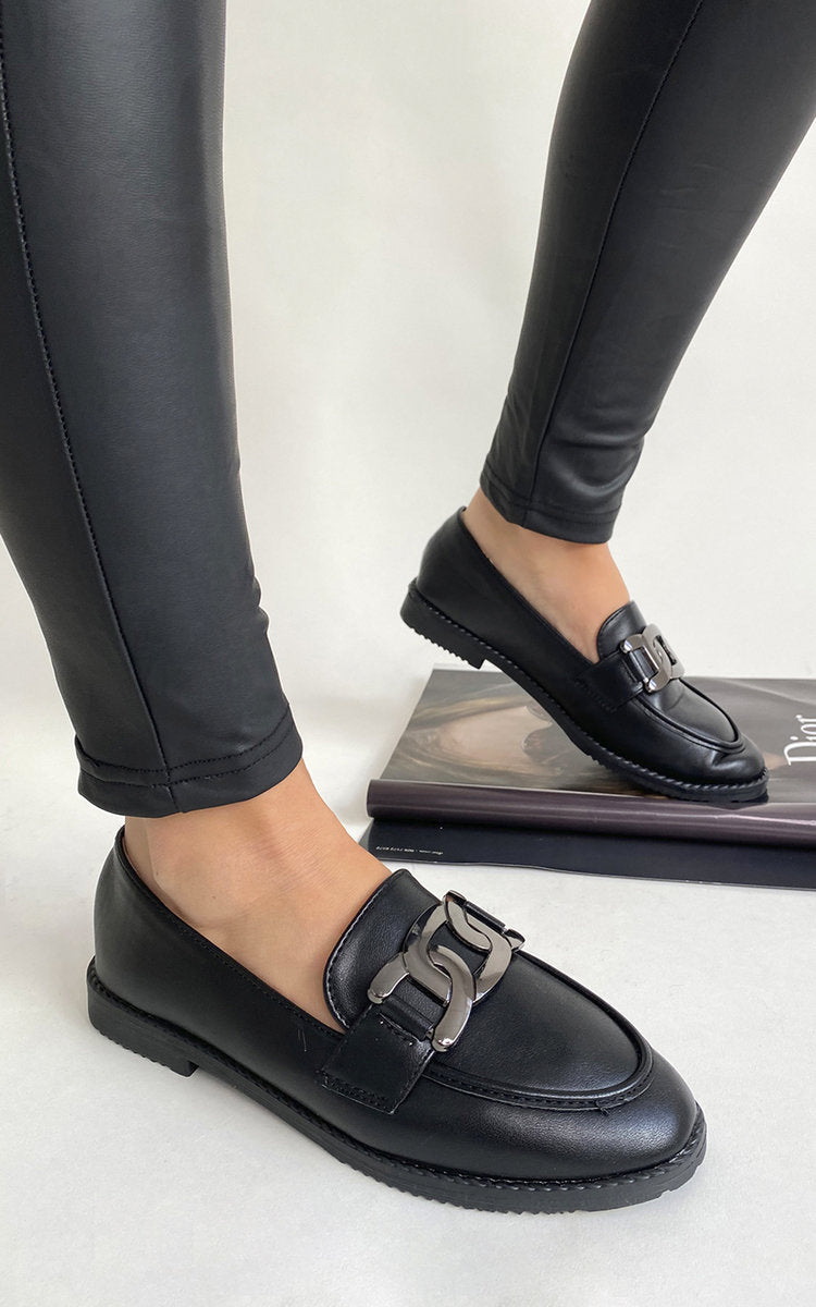 Introducing our brand new Harriet Faux Leather Flat Shoes with Chain Detail! Our newest addition to the ikrush flats collection, these shoes are perfect for dressing up or down! Made from high quality faux leather, they feature a pointed toe and a dainty chain detail across the vamp. dress them up with a pretty dress and statement earrings for your next special occasion, or keep it casual with jeans and a tee. Either way, you'll be sure to turn heads!