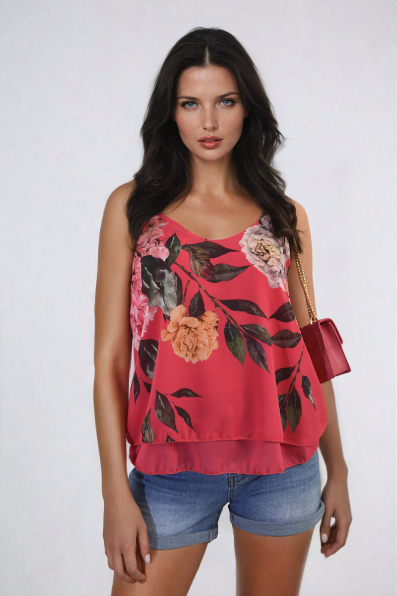 Brighten up your wardrobe with the Luciana Floral Print Layered Cami Top. This cute and comfy top features a lovely floral print and a fun layered design, perfect for any casual outing. Easy to wear and stylish, it's a must-have for your everyday look.
