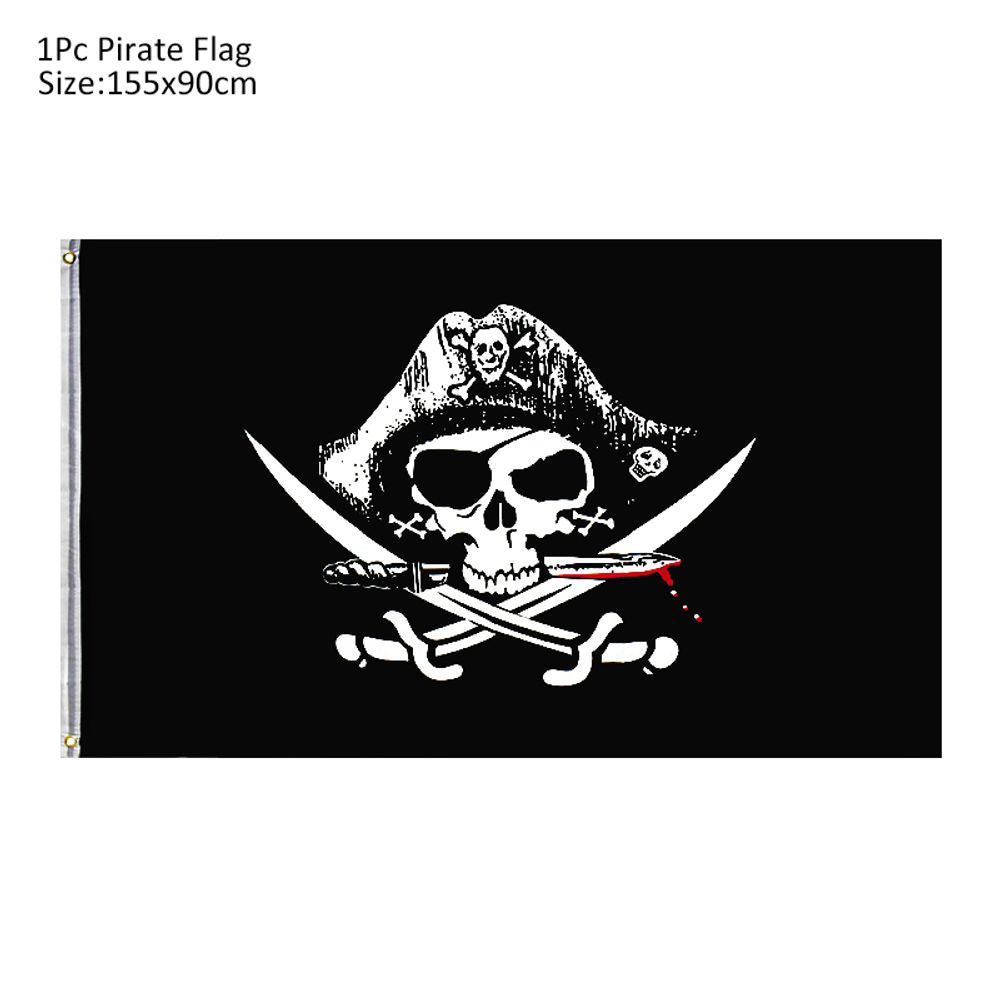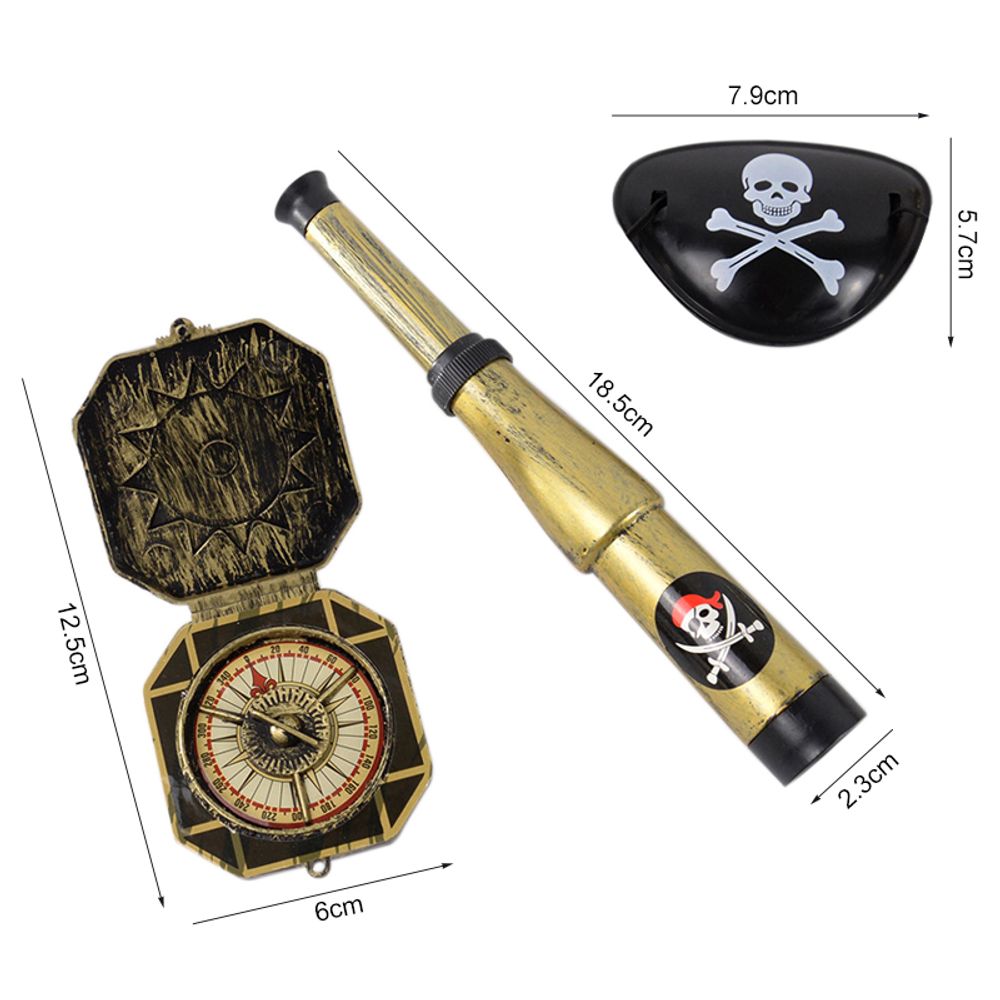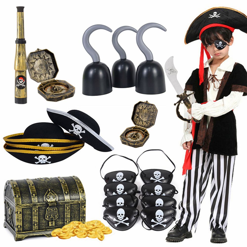Pirate Captain Cosplay Costume Props Set Pirate Hat Hook Hand Flag Compass Telescope Eye Patch Halloween Theme Party Decorations