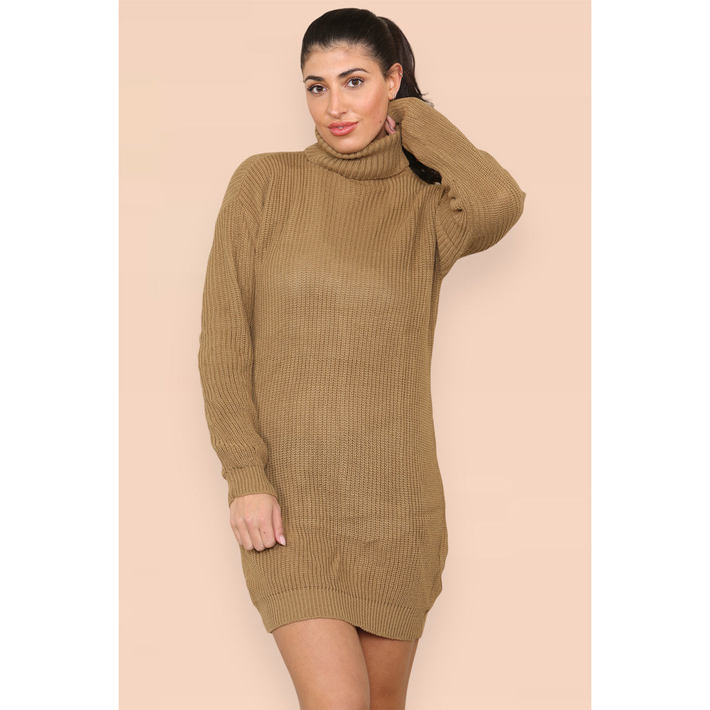 Polo Roll Neck Over Sized Ribbed Knitted Florescent Chunky Sweater Jumper Dress