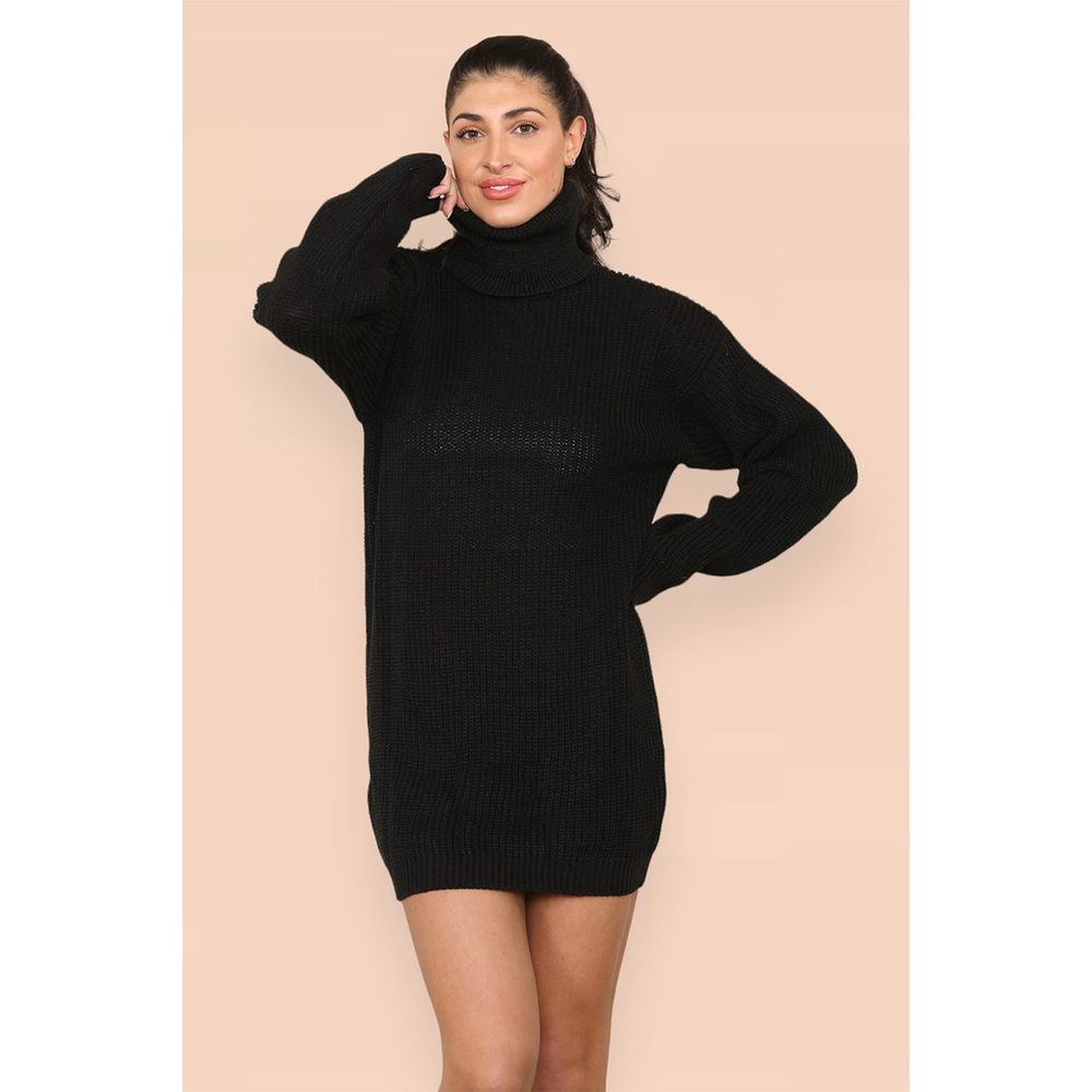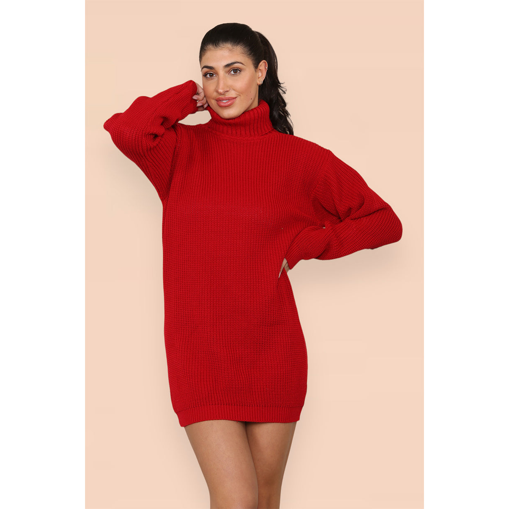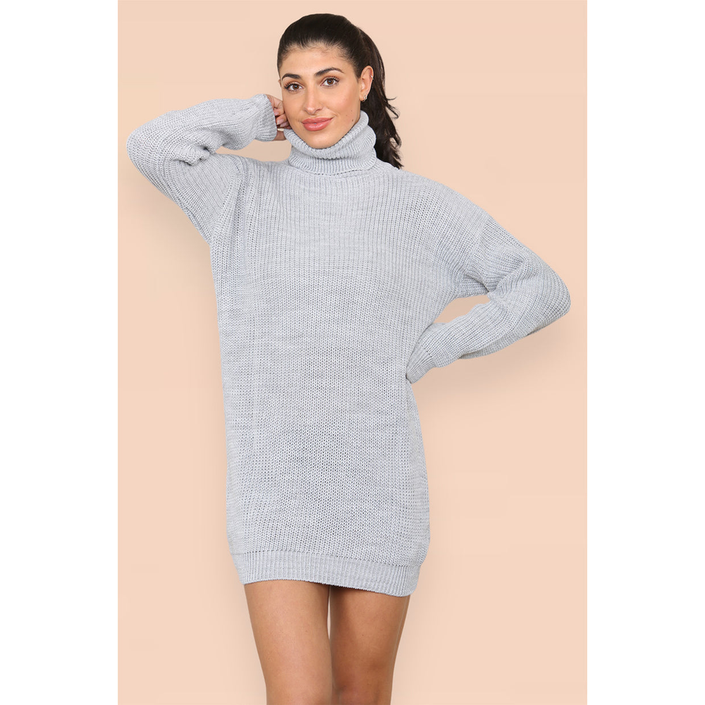 Polo Roll Neck Over Sized Ribbed Knitted Florescent Chunky Jumper Dress
