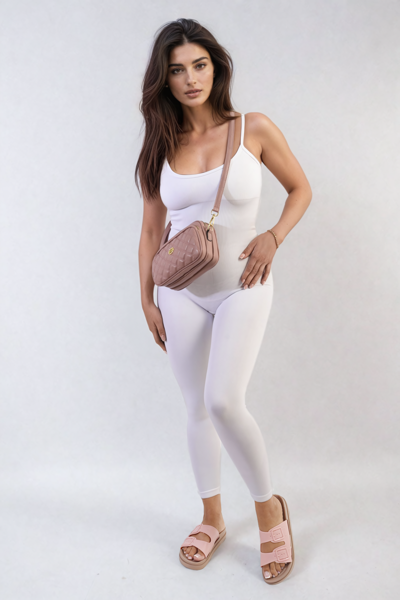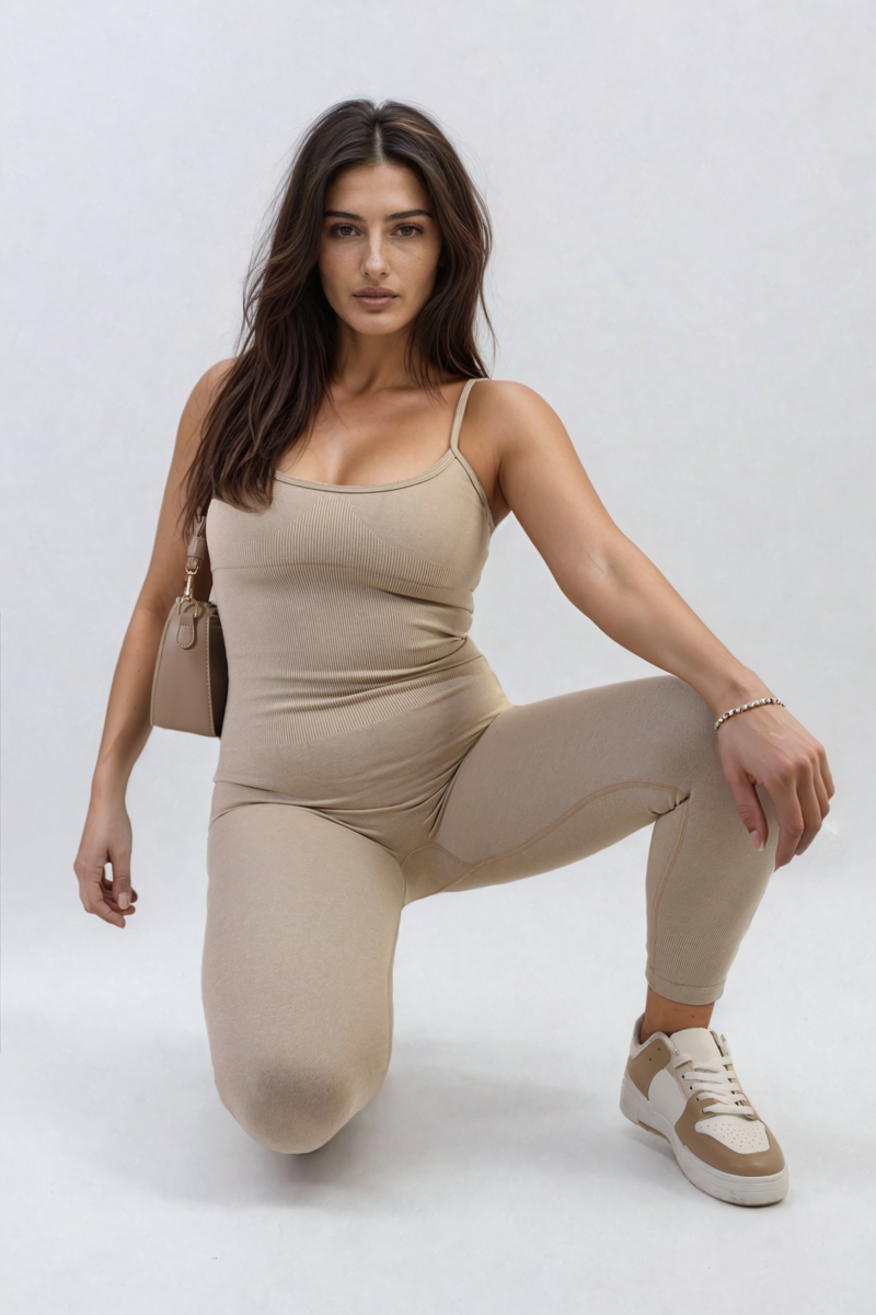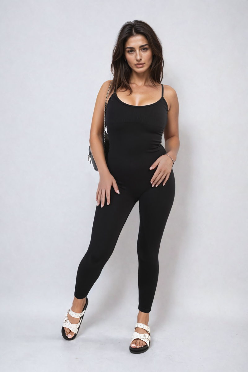 The Christina Sleeveless Bodycon Jumpsuit is a sleek and stylish outfit. It features a body-hugging fit and a sleeveless design, perfect for showing off your curves. Great for a night out or a casual day, this jumpsuit combines comfort with a chic look.