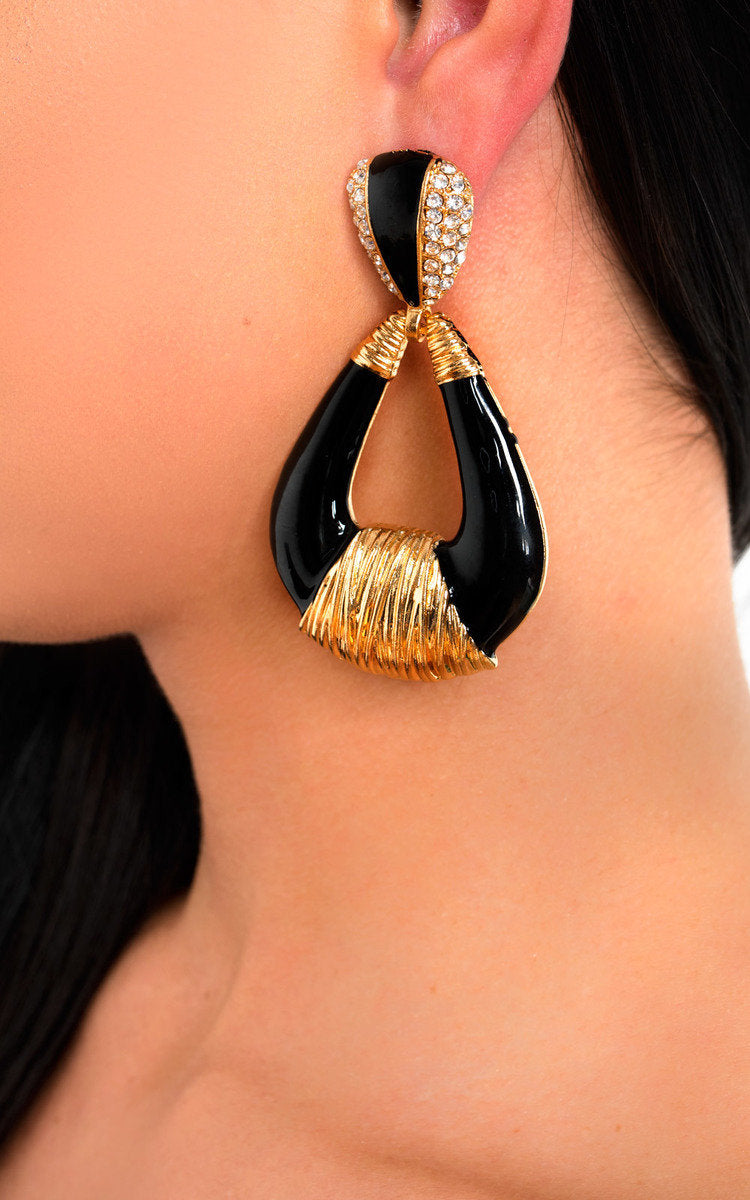 make a STATEMENT in our SERENE earrings! Featuring post backing, diamante embellishment, gold detail and tear drop shape! Pair with your fave LBD for the ultimate look!