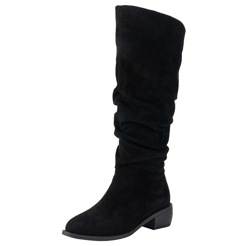 Suede Thick Heel High Leg Boots