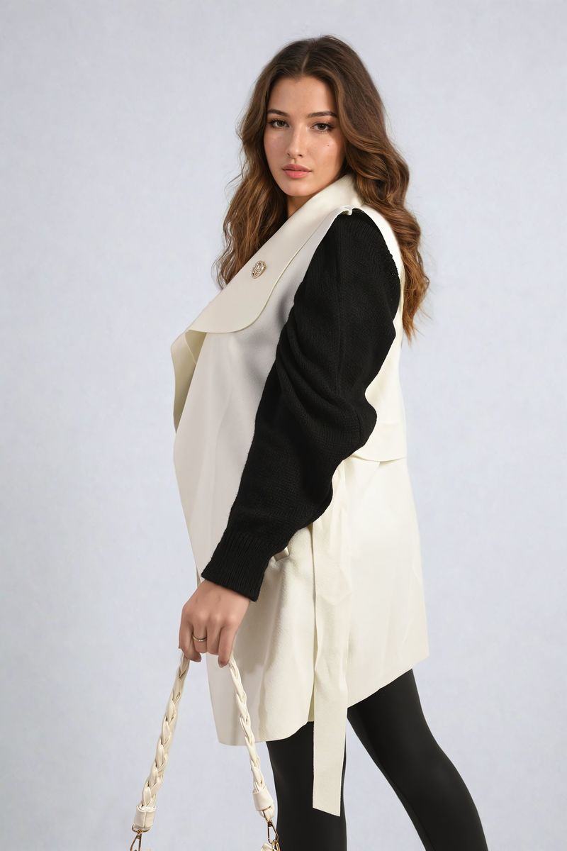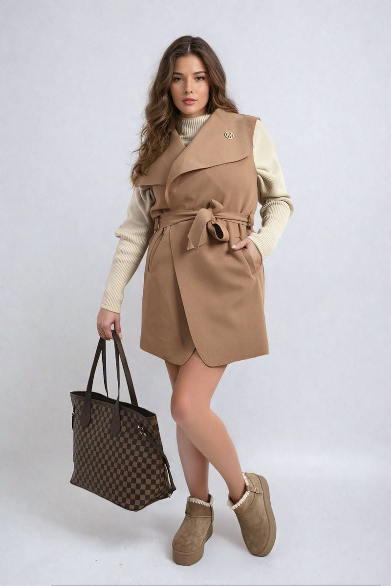 Check out the Camila Wide Lapel Sleeveless Belted Jacket, your new style staple. This sleek jacket features a cool wide lapel and a flattering belted waist that gives you a chic silhouette. Its sleeveless design makes it perfect for layering over your favorite tops. Easy to wear and super stylish, it's a must-have for any fashionista!